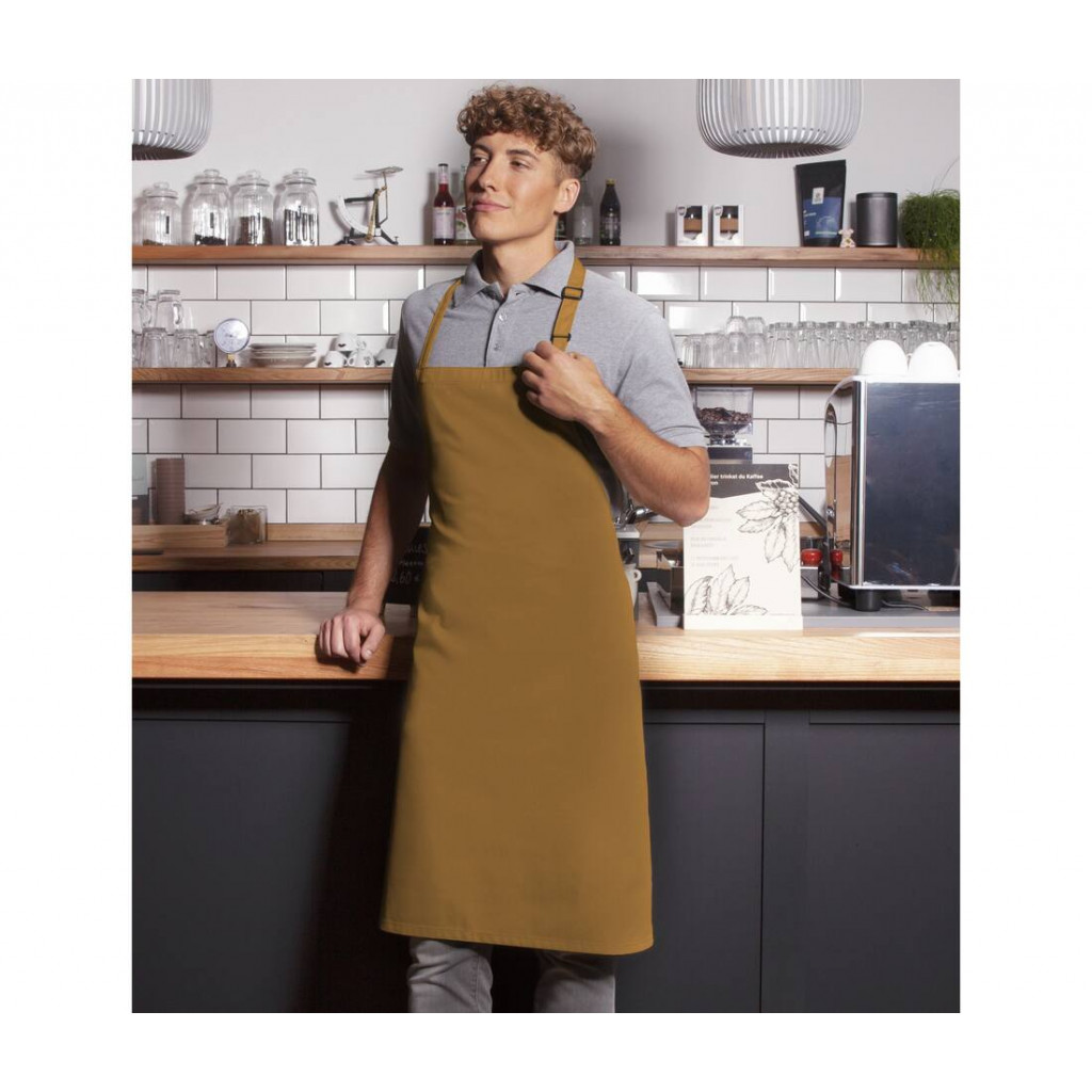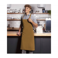 - Tablier à bavette avec lanières composées du même tissu que le tablier