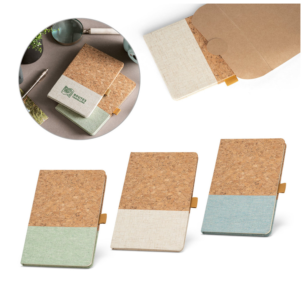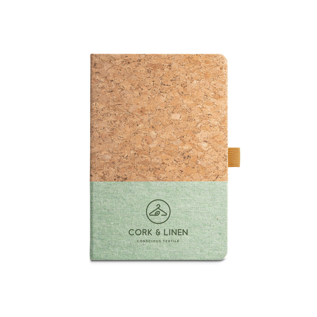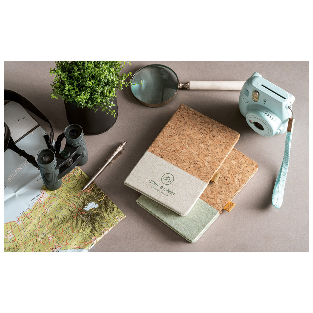 - Bloc-notes A5 à couverture rigide en liège et lin sur la partie inférieure