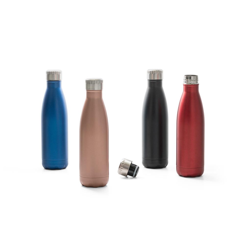 - Bouteille en acier inoxydable avec double parois, capacité jusqu'à 540 ml et bouchon étanche