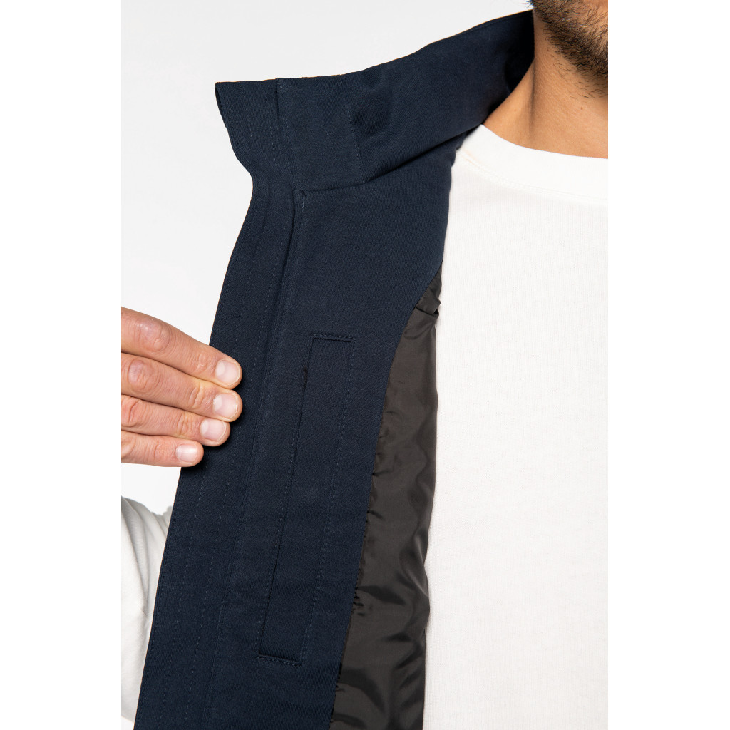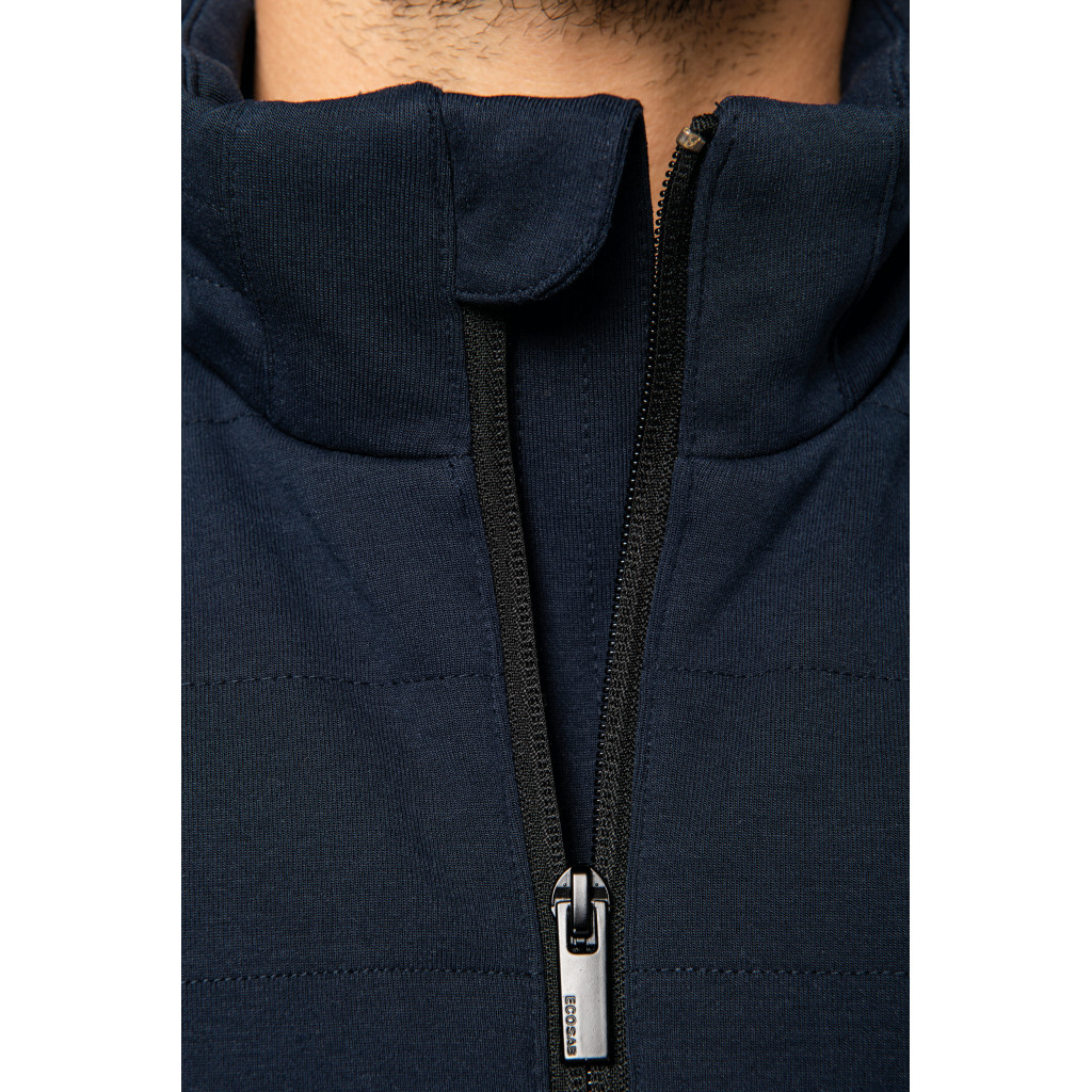 - Zip inversé contrasté noir en nylon recyclé milieu devant et poches côtés avec tire-zip en métal recyclé.