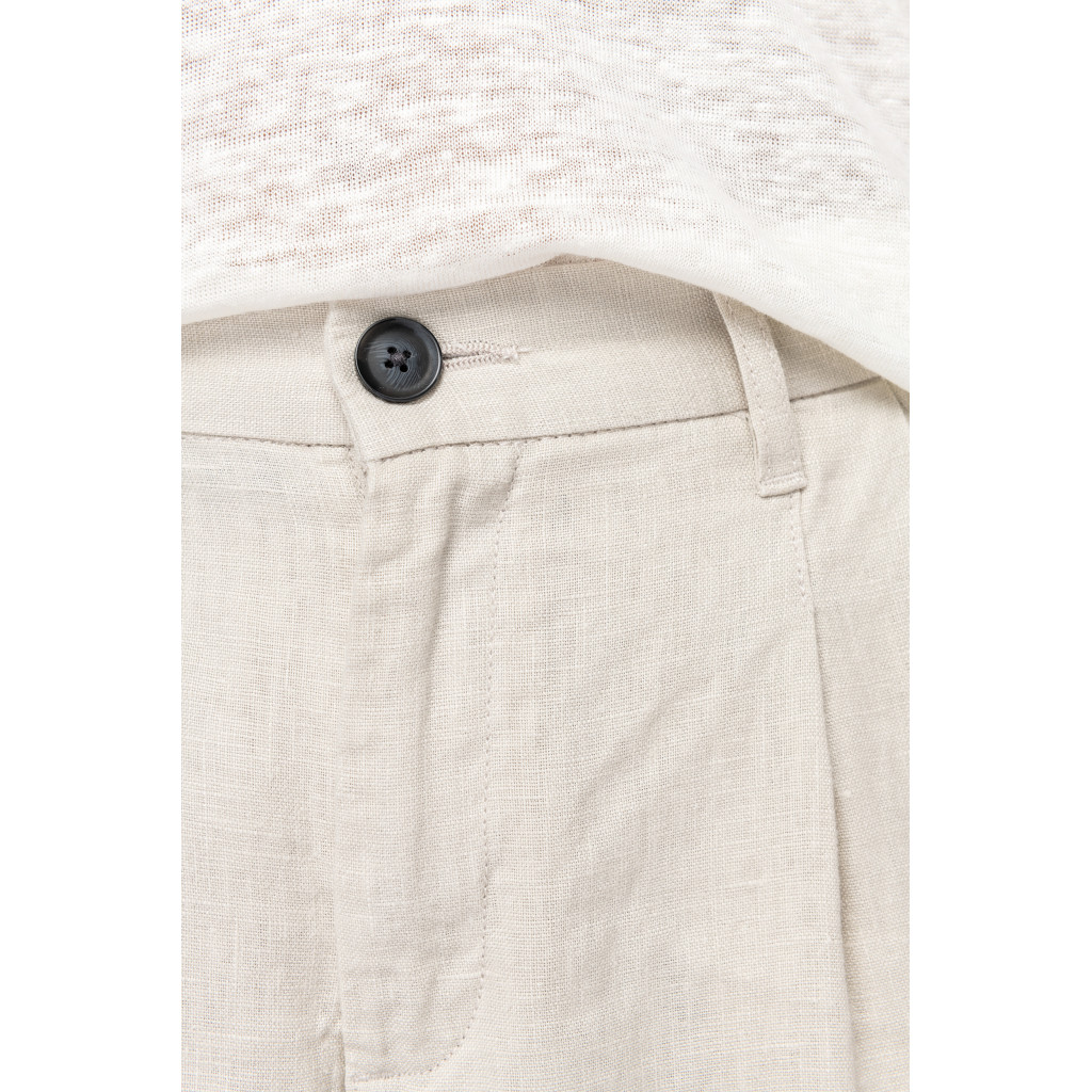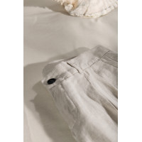 - Finition intérieure ceinture avec un biais de propreté contrasté de couleur bleu marine sur la couleur Linen Sand et ton sur ton sur la couleur White