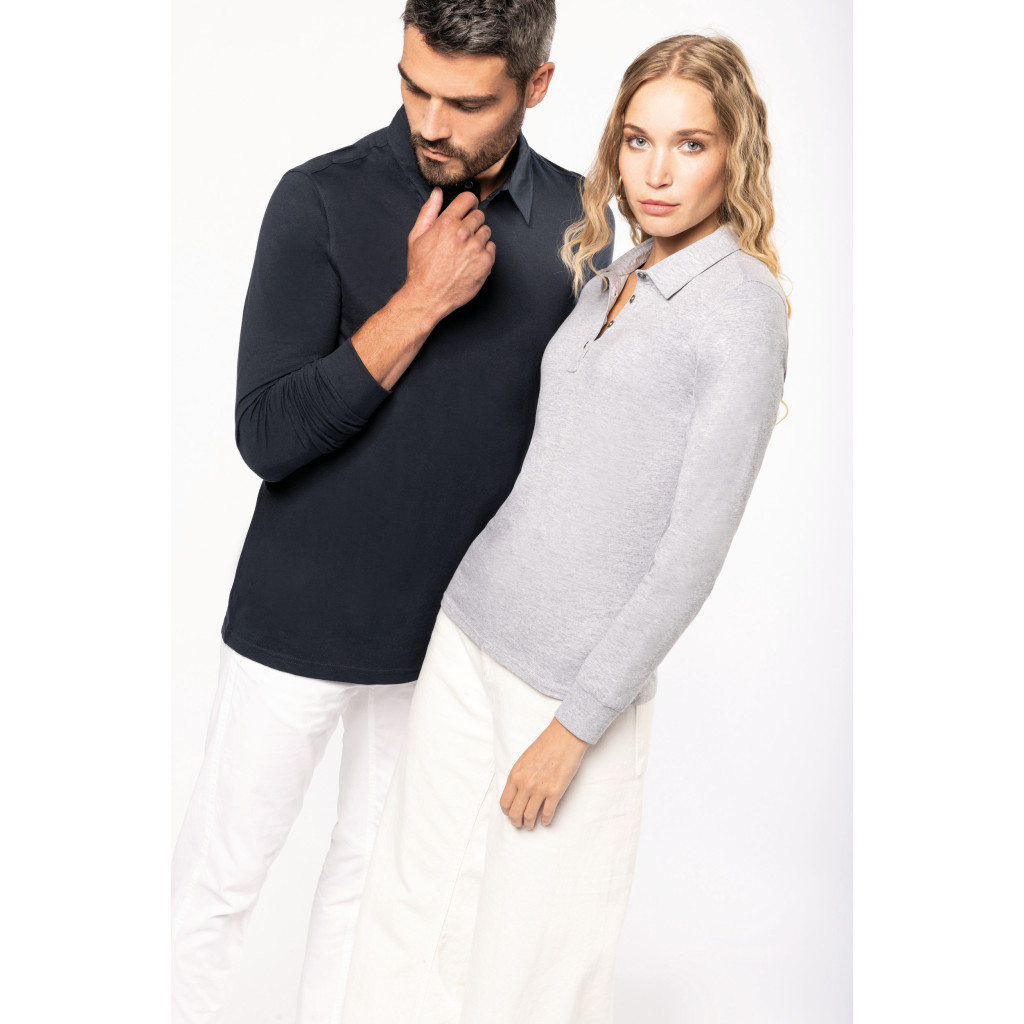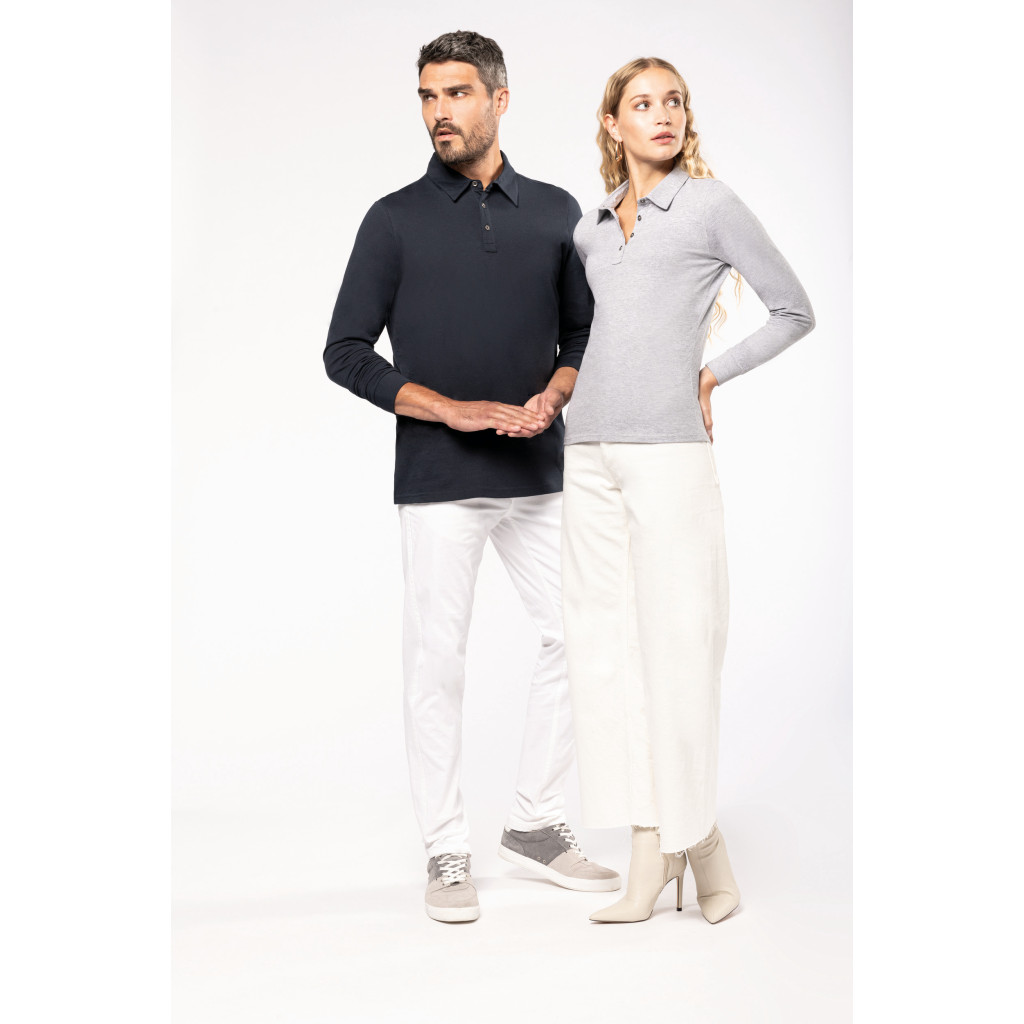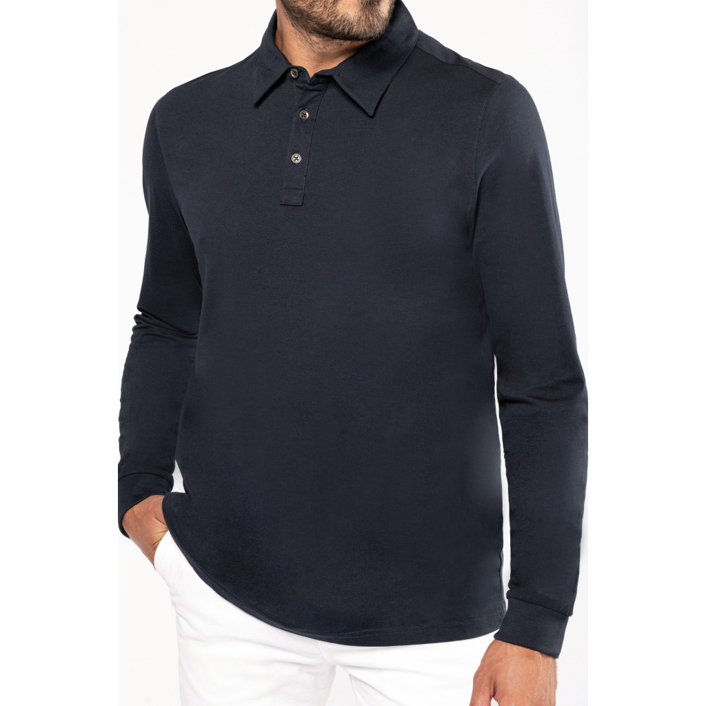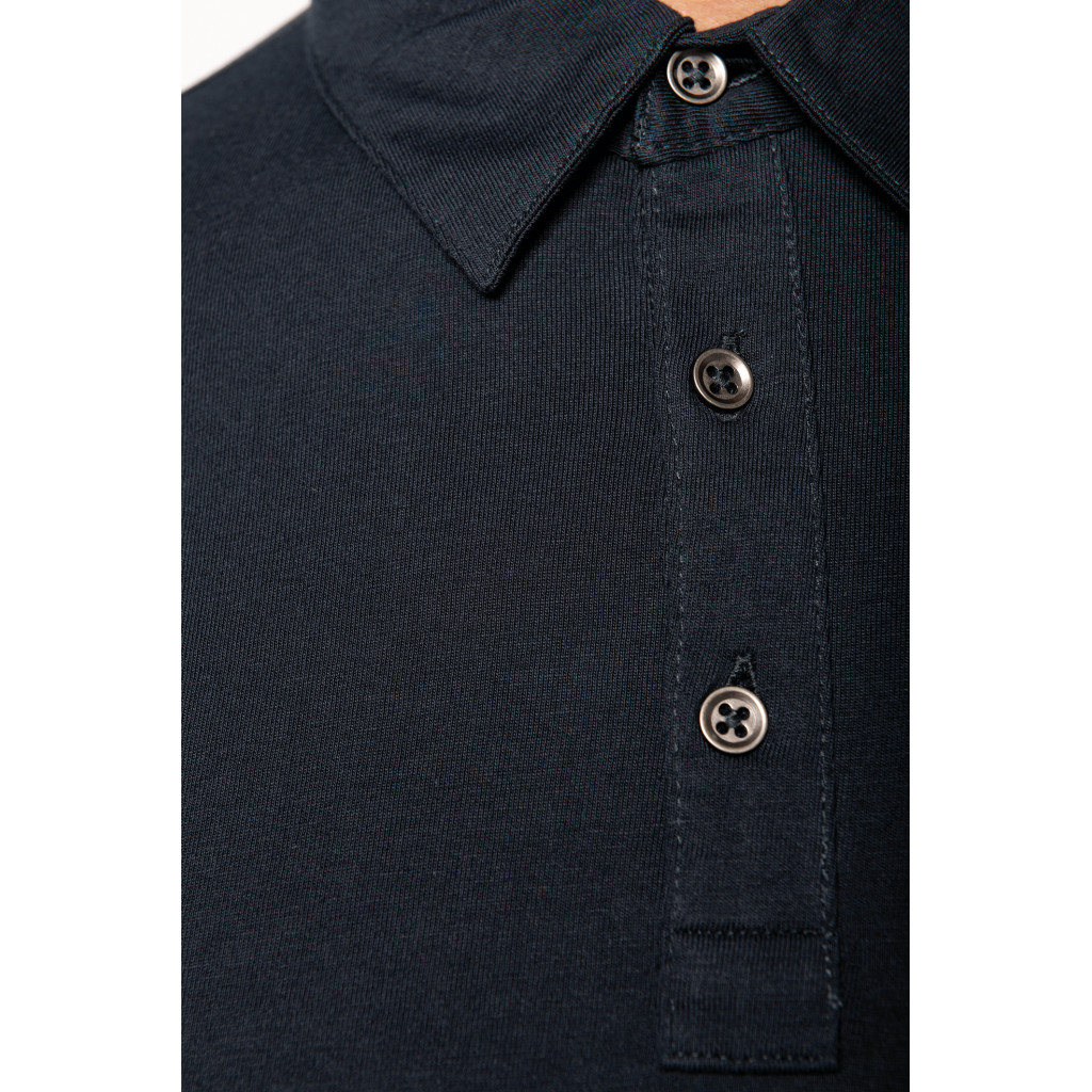 Matière: Maille jersey en coton peigné. Col chemise.