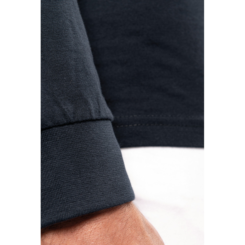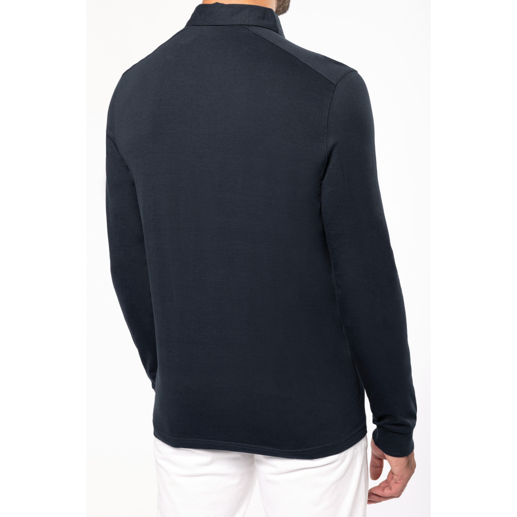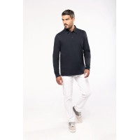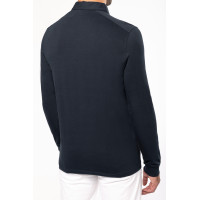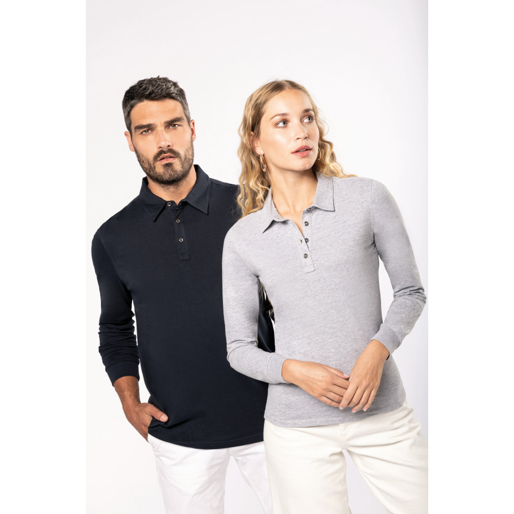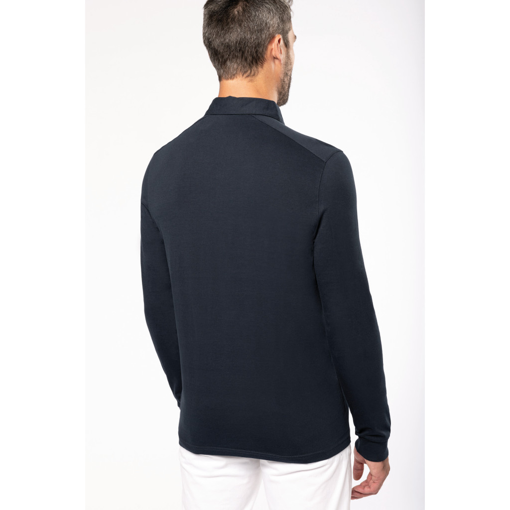 Matière: Maille jersey en coton peigné. Col chemise.