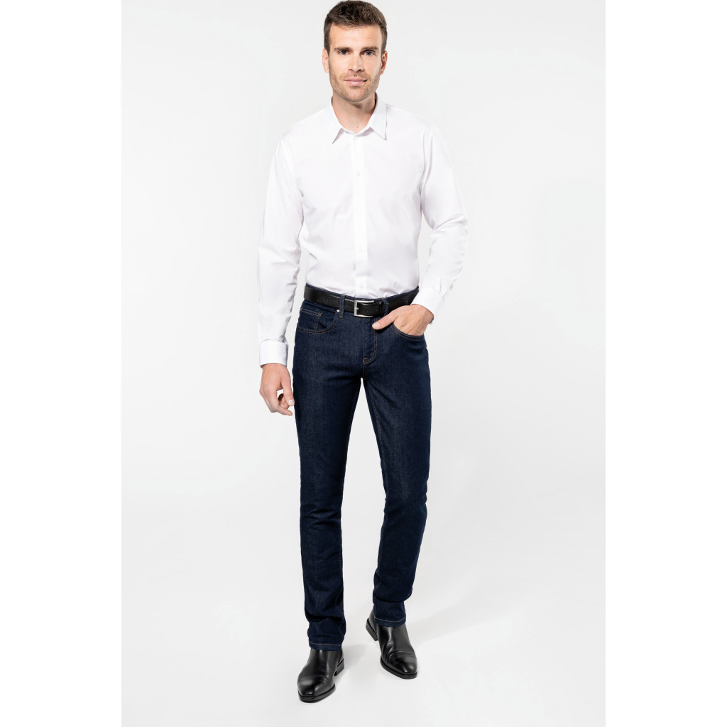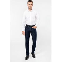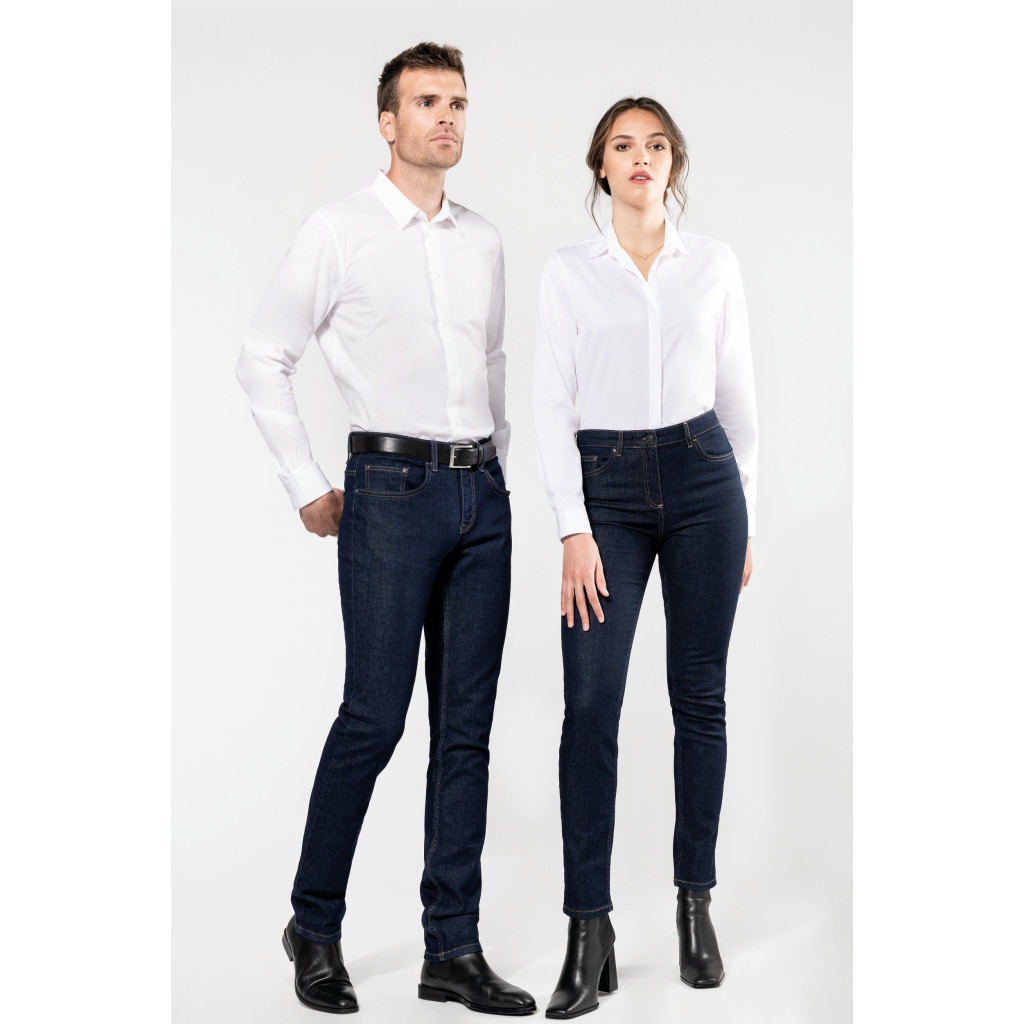 2 poches plaquées arrière. Coutures contrastées bordeaux.