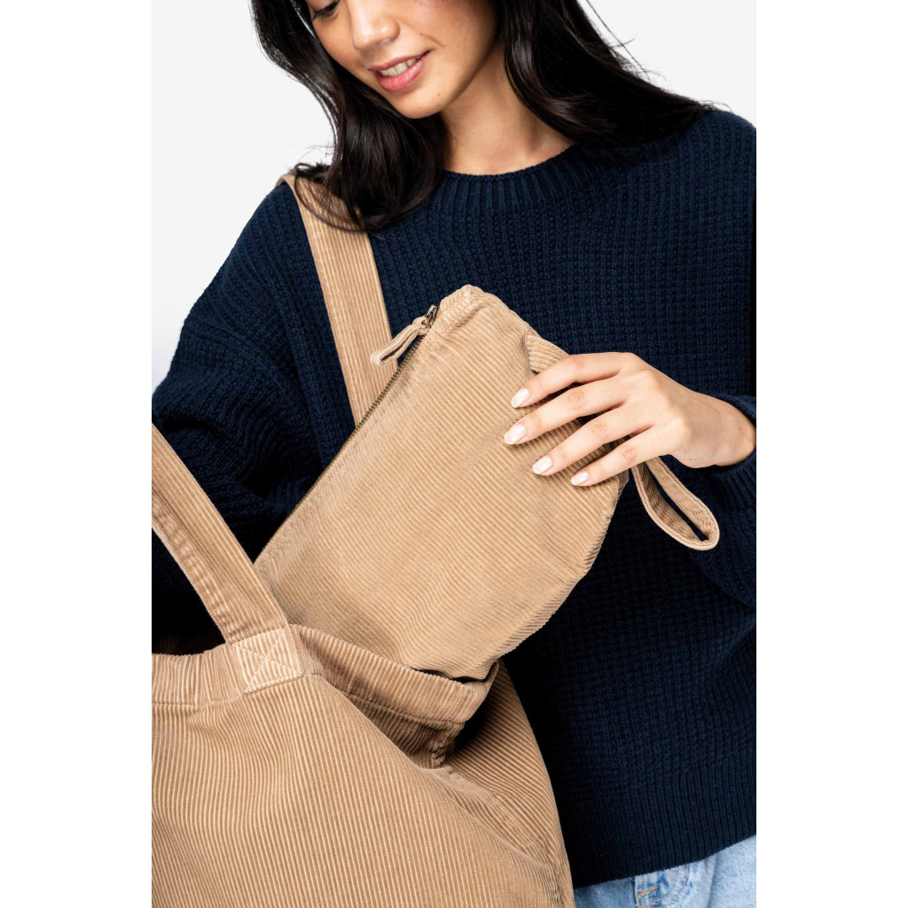 100% coton biologique. Capacité 5L. Pochette en velours côte 1 x 1 avec dragonne en tissu principal ton sur ton. Doublure en coton biologique ton sur ton. Zip en métal recyclé. Poche plaquée intérieure en coton biologique divisé en deux compartiments. Dimensions : 30 x 18 cm. Produit teint après montage : les couleurs peuvent légèrement varier d'une pièce à l'autre. Ce produit est susceptible de déteindre au contact avec des surfaces ou vêtements clairs. Certificats en cours.