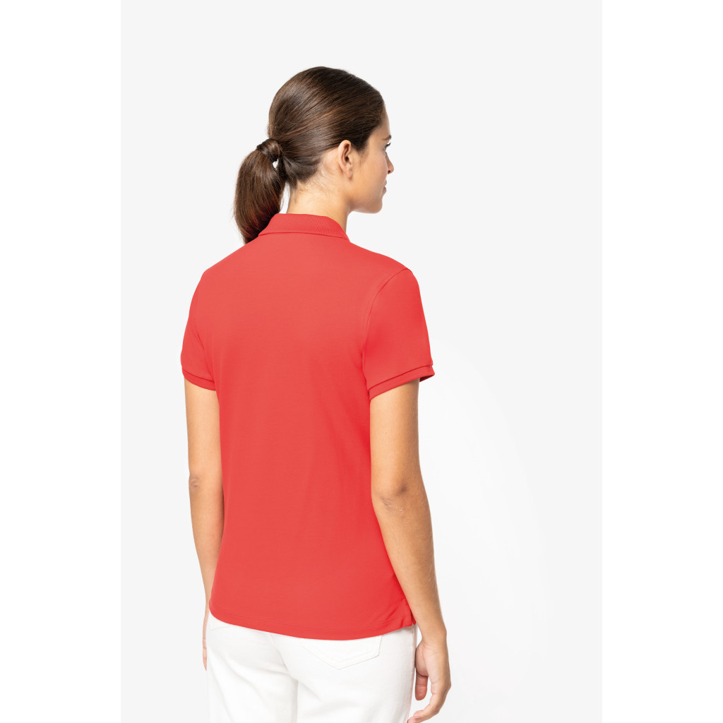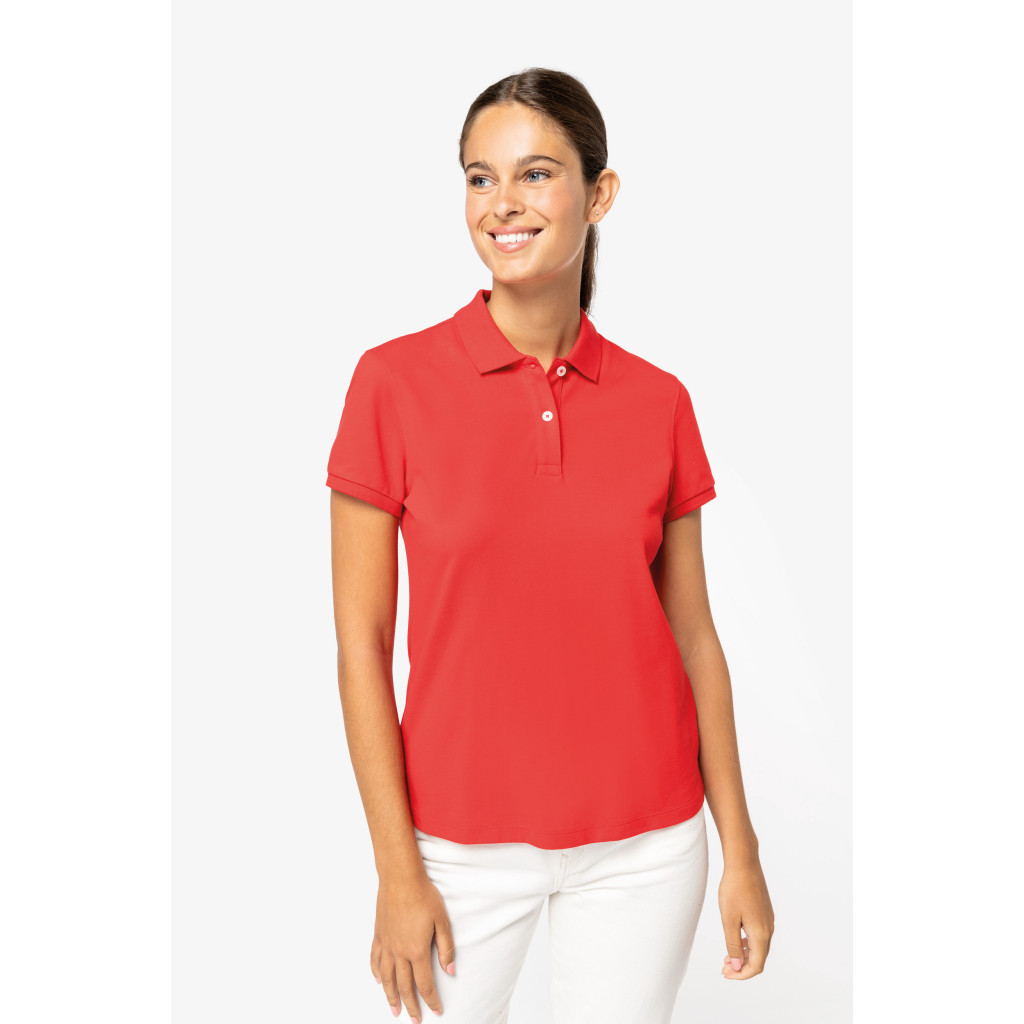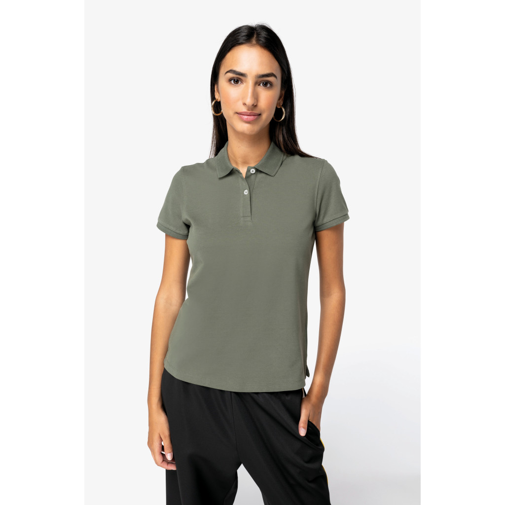 Ce polo écoresponsable femme en maille piquée, lavé aux enzymes pour une finition impeccable.