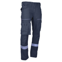 Découvrez ce pantalon de travail stretch, ceinture élastiquée, rehausse lombaire, braguette zippée. Multipoches pratiques: 2 grandes au dos, poche cuisse gauche avec poches stylos, poche amovible pour terminal portable, poche mètre. Renfort fond, bandes rétroréfléchissantes, triple surpiqûres, ourlet magique 5cm, passepoils rétroréfléchissants
