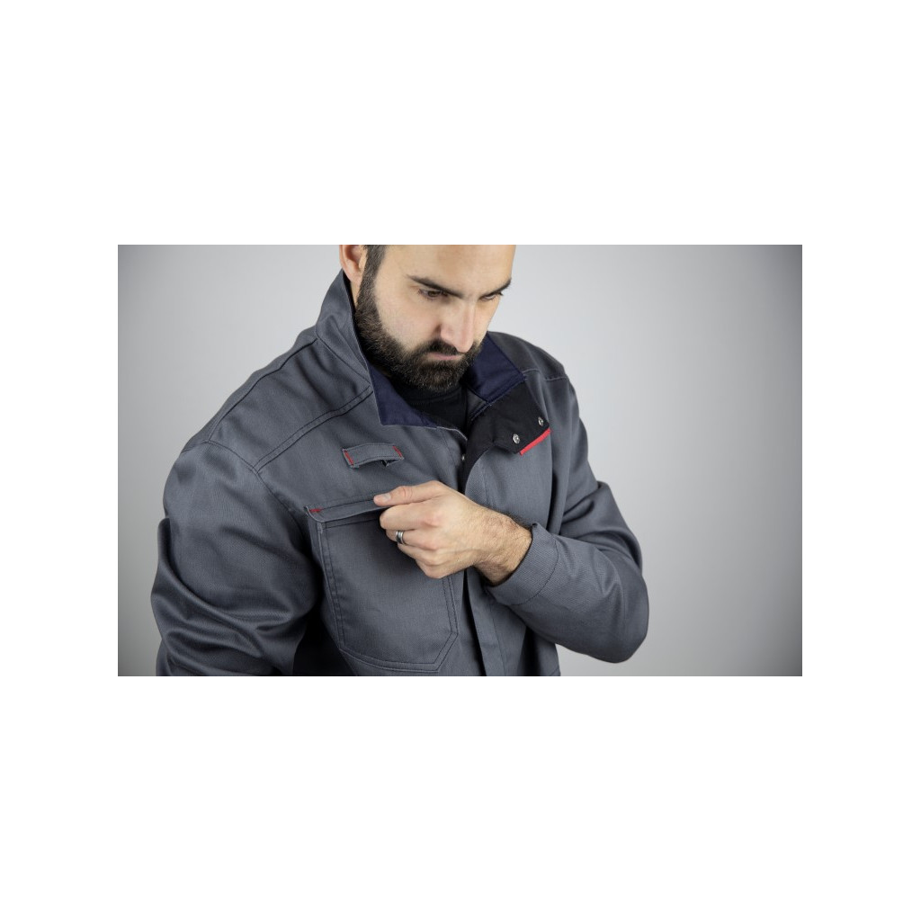 - 1 poche poitrine droite fermée par rabat et bouton pression creuse caché