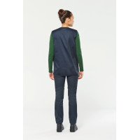 - Biais de finition ton sur ton à l'emmanchure et en bordure de vêtement.
