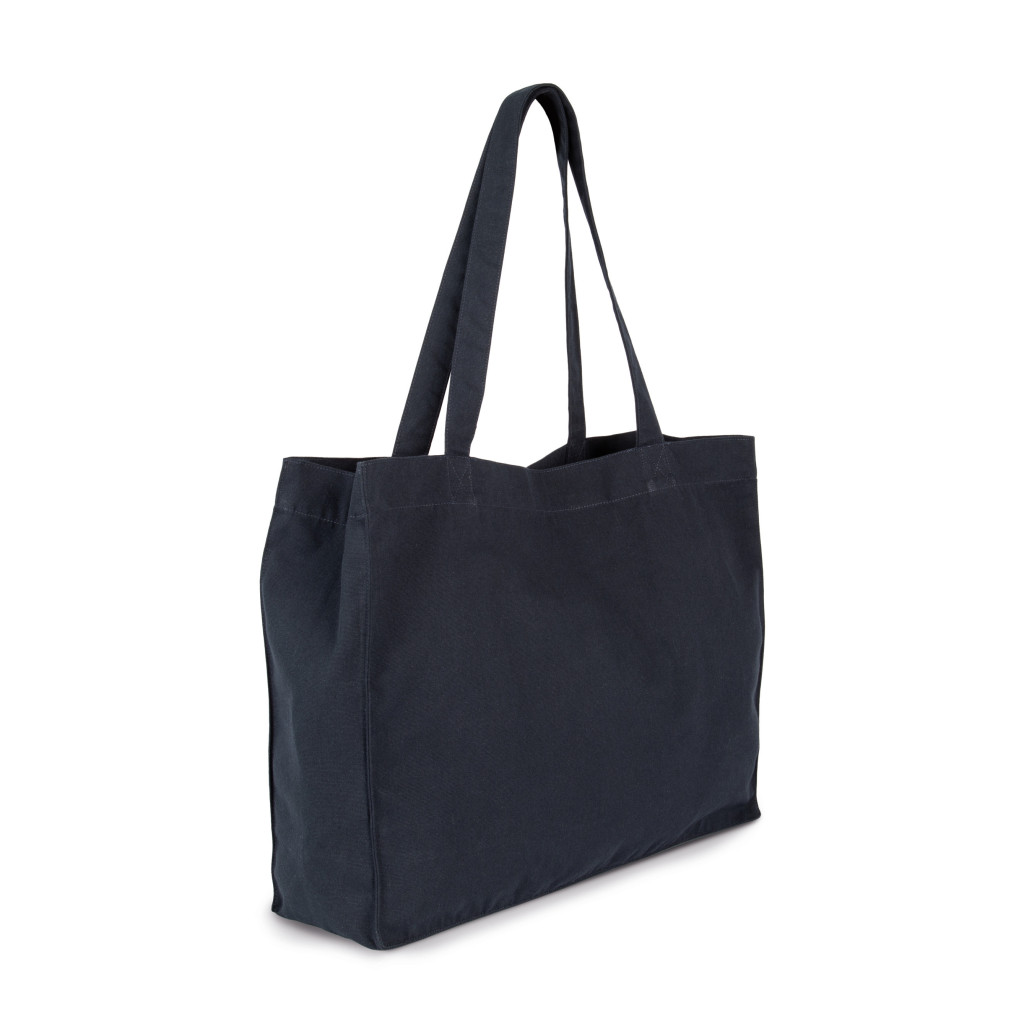 Ce grand sac shopping rectangulaire est doté de poignées assorties en tissu. Faisant partie du projet "K-loop" de Kimood, ce sac illustre l'engagement de la marque à boucler la boucle de l'économie circulaire. Le coton provient des chutes de fabrication des produits en coton de Kariban et de la gamme KARIBAN BRANDS, tandis que le polyester est fabriqué à partir de bouteilles en plastique PET recyclées.