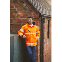 100% polyester rip stop imperméable et respirant. Sous-couche velours détachable. Bandes rétro-réfléchissantes finition double aiguille (larg. 5 cm). Col doublé en velours avec capuche détachable intégrée. Fermeture zippée à double curseur. Poches extérieures bas avec double accès haut et côté, doublées en polaire. Poche stylo et poche mobile sur le bras gauche. Poche poitrine côté droit avec fermeture zippée étanche et poche pour pièce d'identité pouvant être dissimulée. Boucle porte radio à la poitrine côté droit. Espace pour la personnalisation côté cur et zip de personnalisation invisible sur le bas du vêtement. Conforme aux normes EN ISO 20471 de catégorie 3, EN342:2004 de protection contre le froid et à la norme relative aux "Vêtements de Haute Visibilité" des chemins de fer UK GO/RT 3279 Issue 8:2013 (Hi-Vis Orange uniquement).