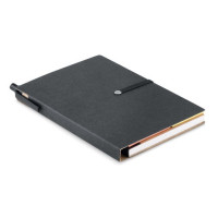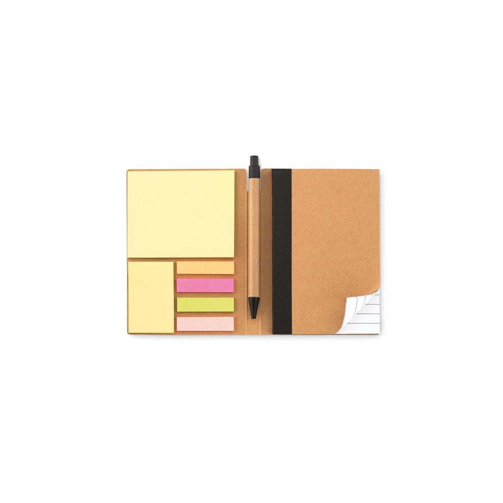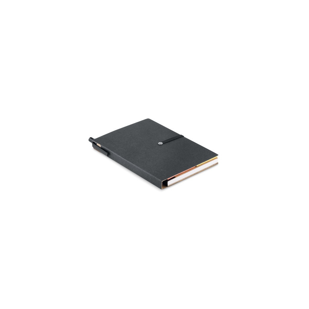 Offrez-vous un carnet à couverture souple en carton recyclé, avec 140 pages lignées (soit 70 feuilles en papier recyclé), accompagné de blocs de notes adhésives grands et moyens ainsi que de marqueurs de pages aux 4 couleurs assorties.