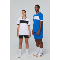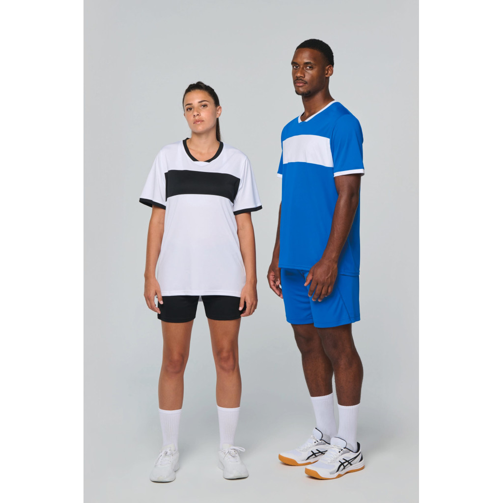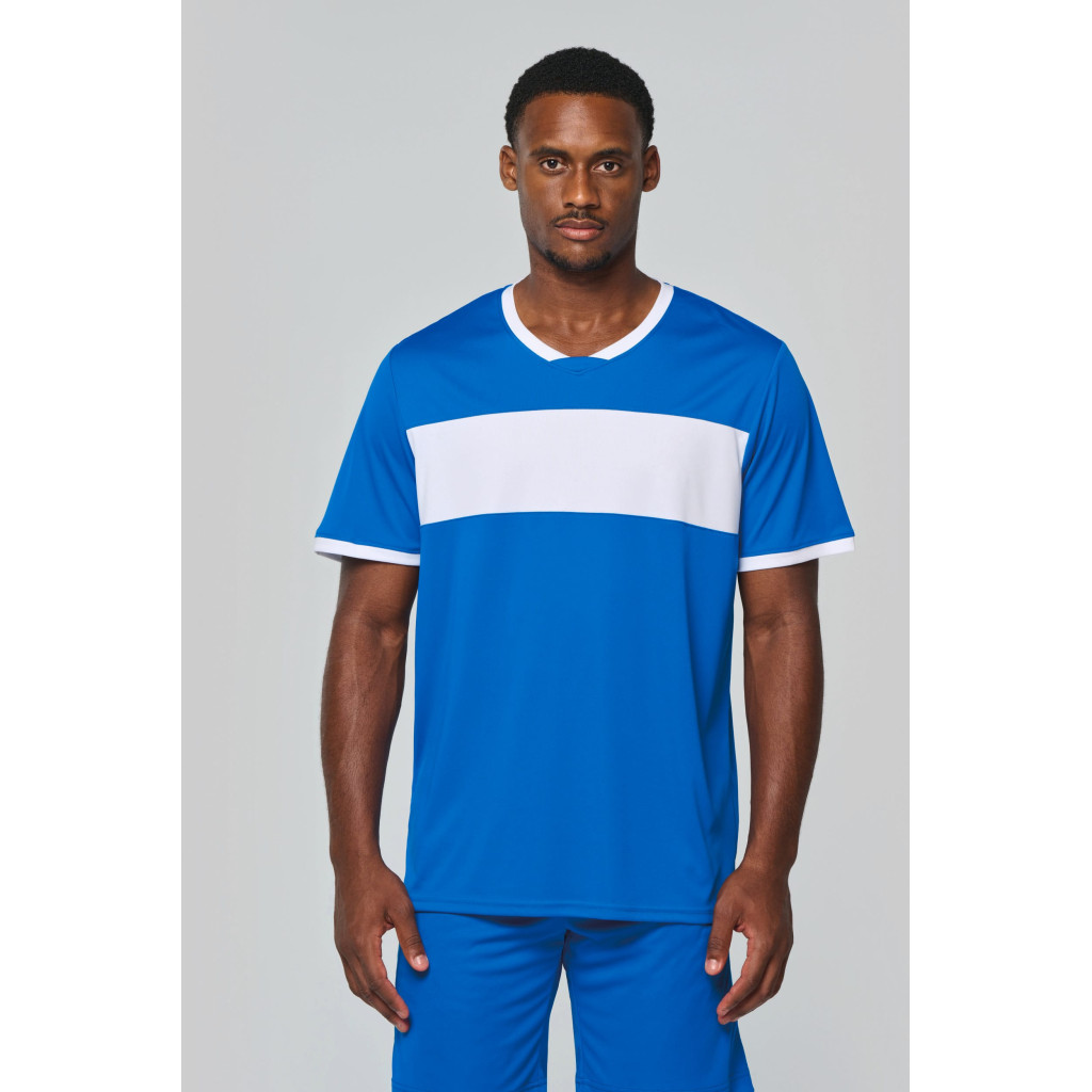 Conçu pour la performance, ce maillot 100% polyester est fabriqué en maille interlock respirante avec un tissu à séchage rapide pour un confort optimal pendant l’effort. Il présente un col en V avec bande de propreté pour une finition soignée, ainsi que des manches montées pour une coupe ergonomique. Les empiècements contrastés au niveau de la poitrine, du col et des bas de manches apportent une touche dynamique au design. Idéal pour les clubs et événements sportifs, ce maillot est entièrement personnalisable.