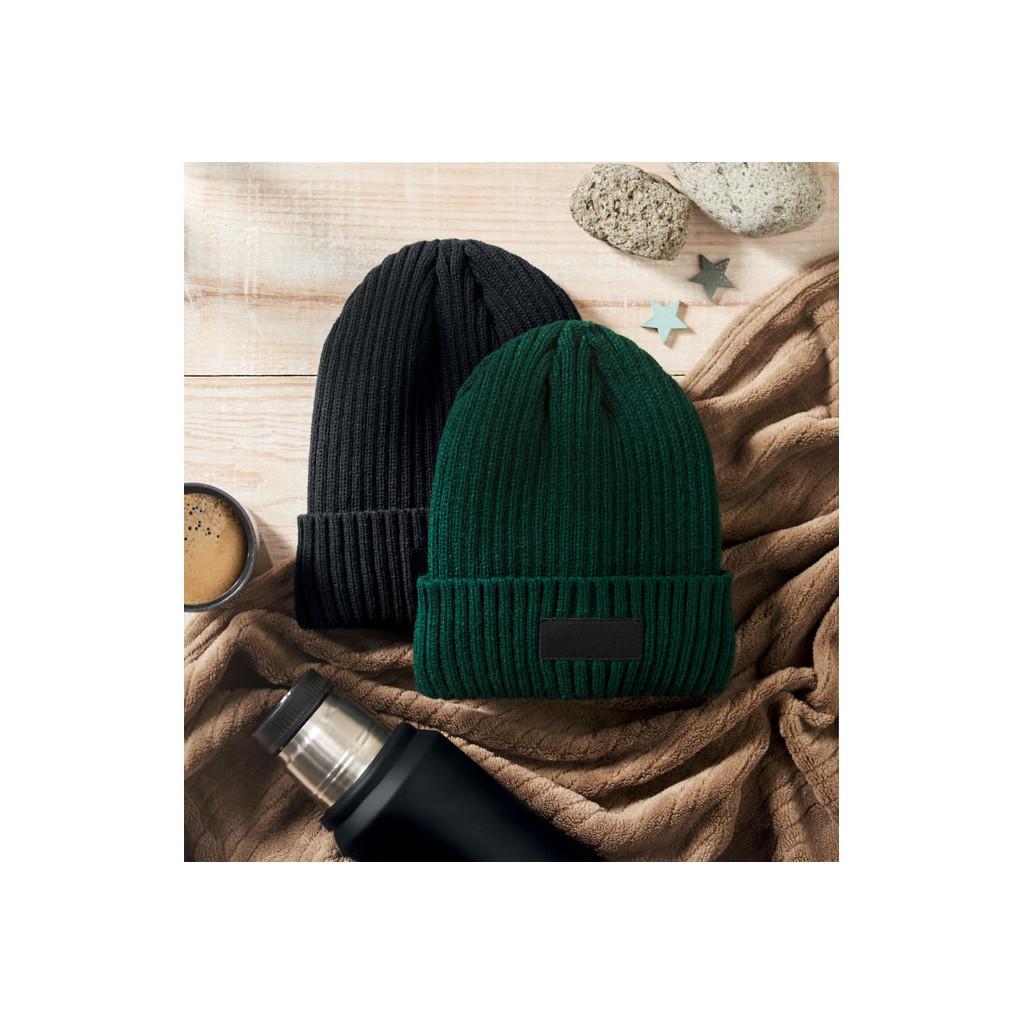 - Bonnet tricoté unisexe en acrylique à l'extérieur et en polyester à l'intérieur, revers