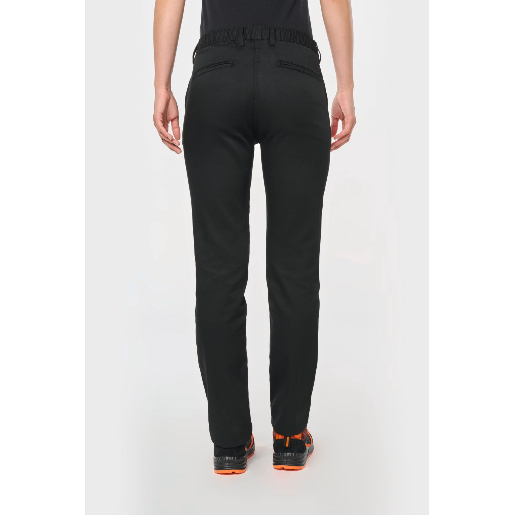 Il est doté de 2 poches italiennes latérales, 2 poches arrière passepoilées avec coutures renforcées, d’une braguette zippée et boutonnée, ainsi que d’une ceinture élastiquée avec passants pour un ajustement parfait.