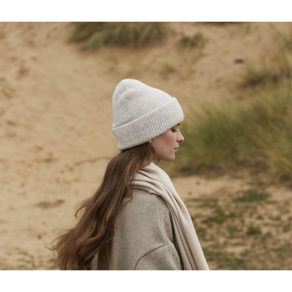 Personnalisez ce bonnet en maille côtelée avec une laine haut de gamme.