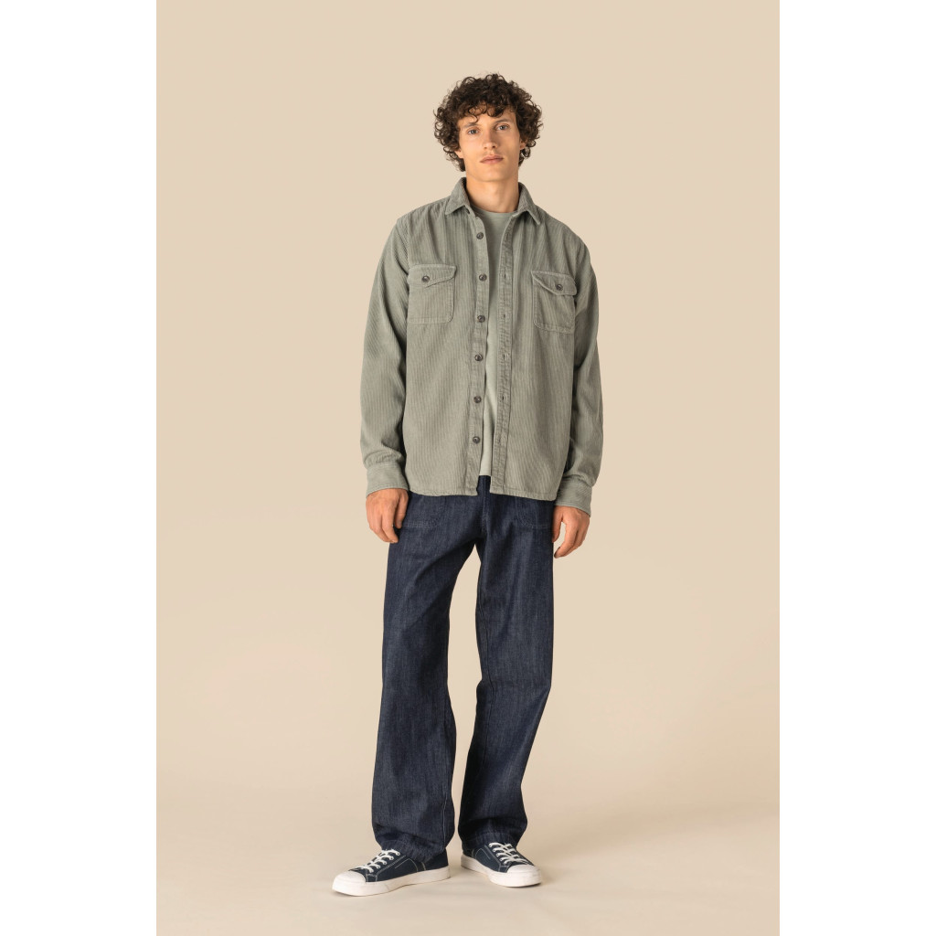 Besoin de toucher la texture du velours ou de choisir entre le Washed Brown Sugar, Washed Navy Blue ou Washed Pale Khaki? Passez nous voir au Showroom MTP ! Essayez les tailles (du XS au 3XL) et visualisons ensemble l'emplacement de votre future broderie au-dessus de la poche.