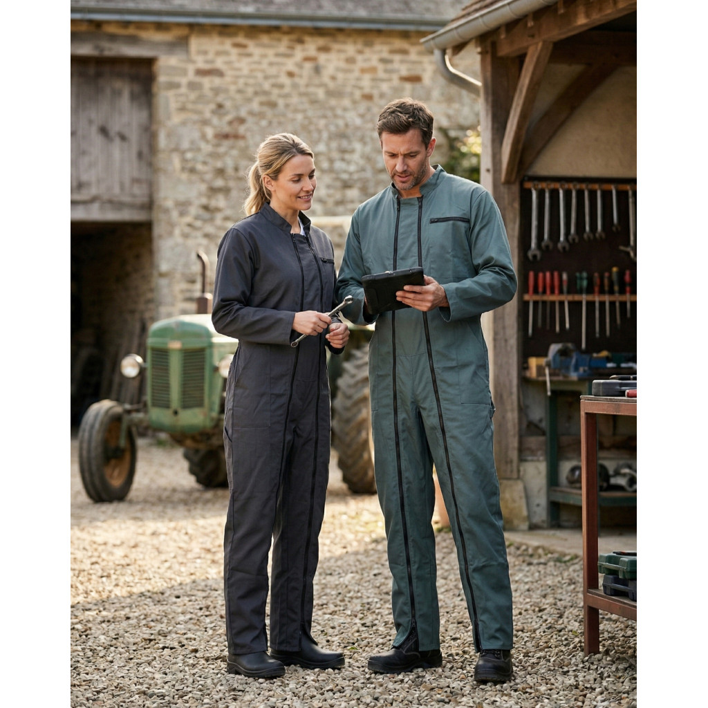 Issues de la gamme BASIC de chez LMA, les combinaisons CHARDON (Gris) et MELISSE (Vert) sont conçues pour offrir une solution de protection fiable et simple à enfiler. Leur composition majoritairement en polyester garantit une grande durabilité et une facilité d'entretien appréciée des professionnels.