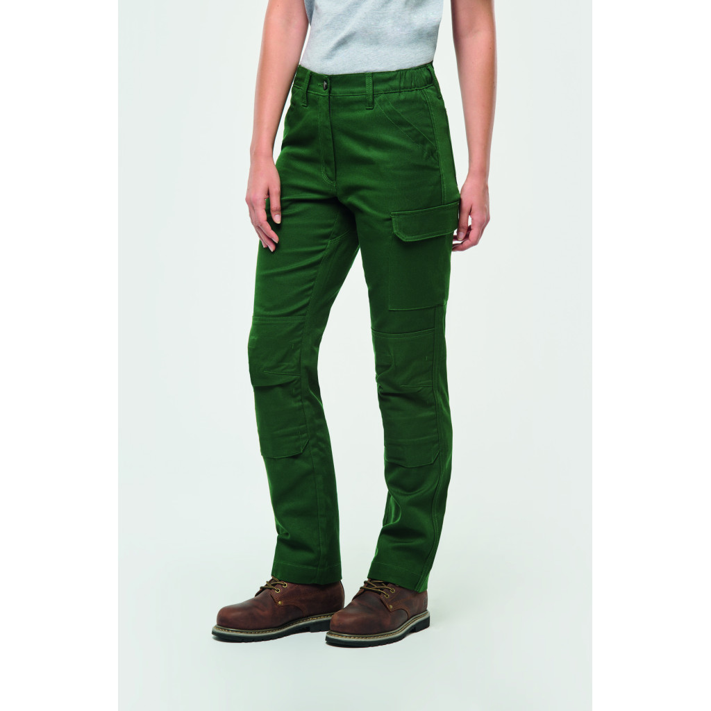 60% coton / 40% polyester. Tissu sergé. Lavage 60°C. Coupe droite. 2 poches devant (sacs de poches en tissu principal). 1 poche à rabat avec fermeture velcro côté gauche au porté, 1 double poche outil ouverte à droite au porté, 2 poches plaquées arrière, 2 poches genouillères ton sur ton avec velcro et rabat intérieur pour maintenir et adapter la genouillère. Ceinture en partie élastiquée avec passants. Fermeture zippée et boutonnée. Bouton plastique. Soufflet à l'entrejambe pour plus de résistance et une parfaite liberté de mouvement. Double piqûres coutures côtés, triple coutures soufflet et fourche devant et dos. Genouillère non fournie. Surpiqûres nervures à l'entrejambe. Ourlet bas de jambe. Etiquette de marque détachable.