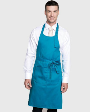 Vous possédez un restaurant ou une entreprise de traiteur et souhaitez mettre en avant votre identité facilement? La solution idéale est de faire porter un vêtement par votre équipe de travail chaque jour. Nous vous proposons notre tablier sommelier Polycoton de la marque Kariban. Composé de 65% de polyester et 35% de coton pour un grammage de 190 g/m2, il est facilement lavage à 60°C. Ce modèle se distingue par sa taille réglable par passant métallique et sa grande poche avant avec 2 compartiments de 20 cm x 31.5 cm. Les dimensions du tablier de 90 cm de hauteur et de 76 cm de largeur vous permettront de vus protéger entièrement des éclaboussures éventuelles. De plus, ce tablier existe en 21 coloris différents et également en version 100% coton.