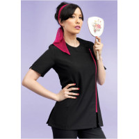 100% polyester. Tunique pour esthétique ou spa avec manches courtes. Système de fermeture zippée asymétrique sur le devant. Fentes latérales. Coutures princesse. Facile d'entretien.