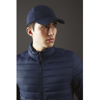 100% nylon Ripstop. Avec bande de sudation 100% polyester Coolmax®. 6 panneaux et visière préformée. Imperméable et respirante. Sangle ajustable avec fermeture à clip. Étiquette Tearaway pour faciliter le changement de marque.
