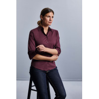 Popeline 97% coton / 3% élasthanne. Mailles extensibles pour plus de confort et un ajustement parfait, entretien minimal requis. Empiècement de boutonnage à 7 boutons en coloris assortis à la chemise. Pinces au niveau du dos et à l'avant (de l'ourlet inférieur jusqu'au buste) pour une coupe adaptée aux formes naturelles des femmes. Col classique à bouton unique. Manches jusqu'aux coudes avec poignets fendus.