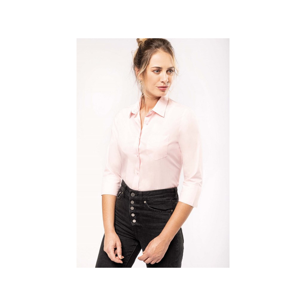 Chemise femme manches 3/4 à personnaliser. Cette chemise est adaptée pour les professionnels et particuliers. Chemise de travail pour des commerciaux, des vendeuses en boulangerie, serveuse en restauration...