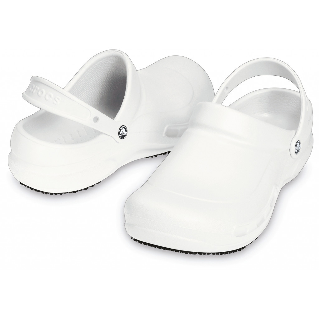Sabots confortables, destinés aux professionnels de la restauration, de l'hôtellerie et de la santé : avec leur conception antidérapante et leur protection supplémentaire au niveau des orteils, les Crocs Bistro vous offrent tout ce dont vos pieds ont besoin sur le lieu de travail !
