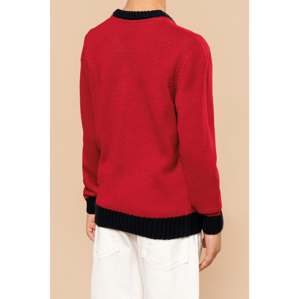 - Présence d'élasthanne dans le bord côte bas de manche et bas de vêtement pour éviter que le pullover se déforme