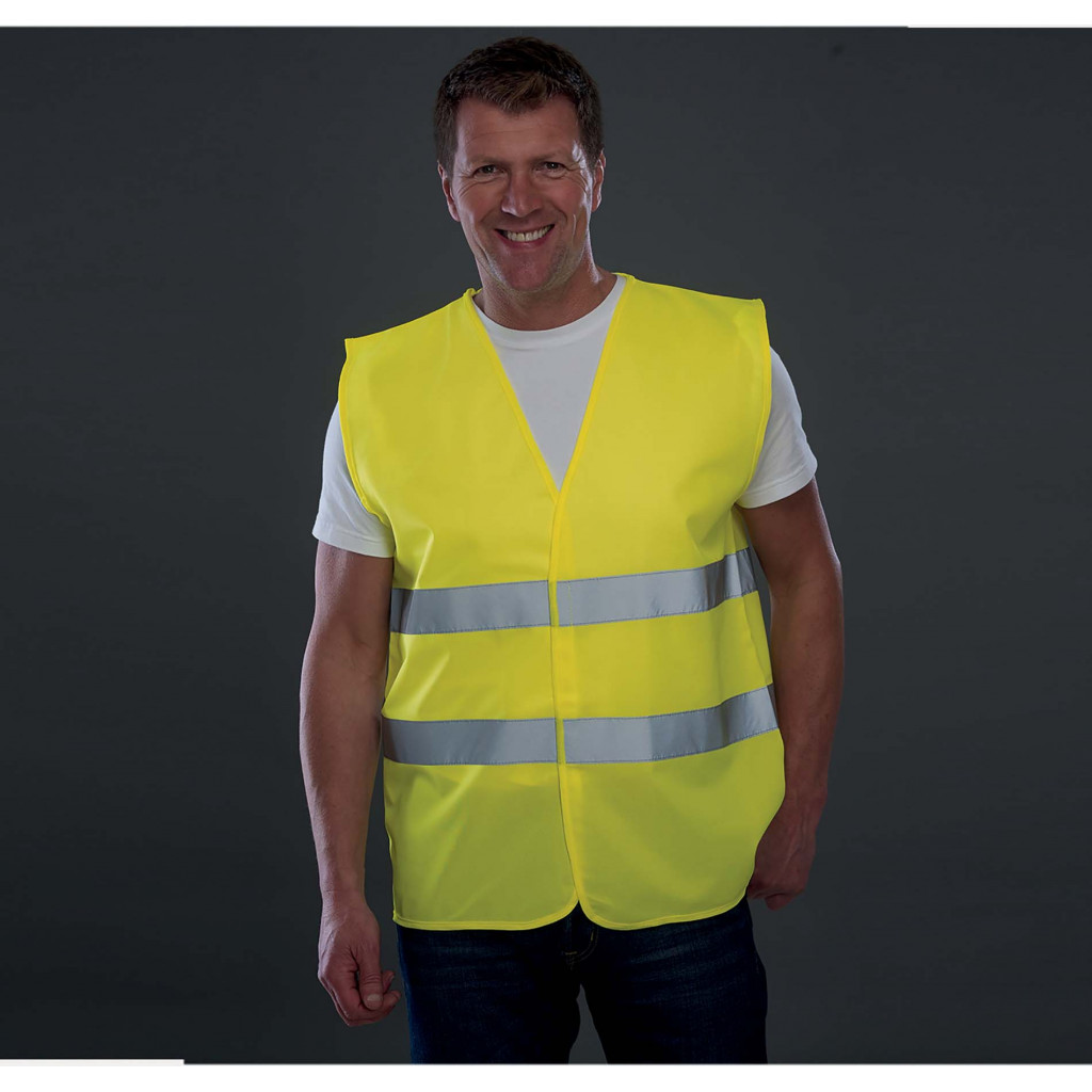 Gilet de sécurité personnalisable. 100% polyester. 2 bandes réfléchissantes de 5 cm de large autour du corps. Fermetur... Plus de détails