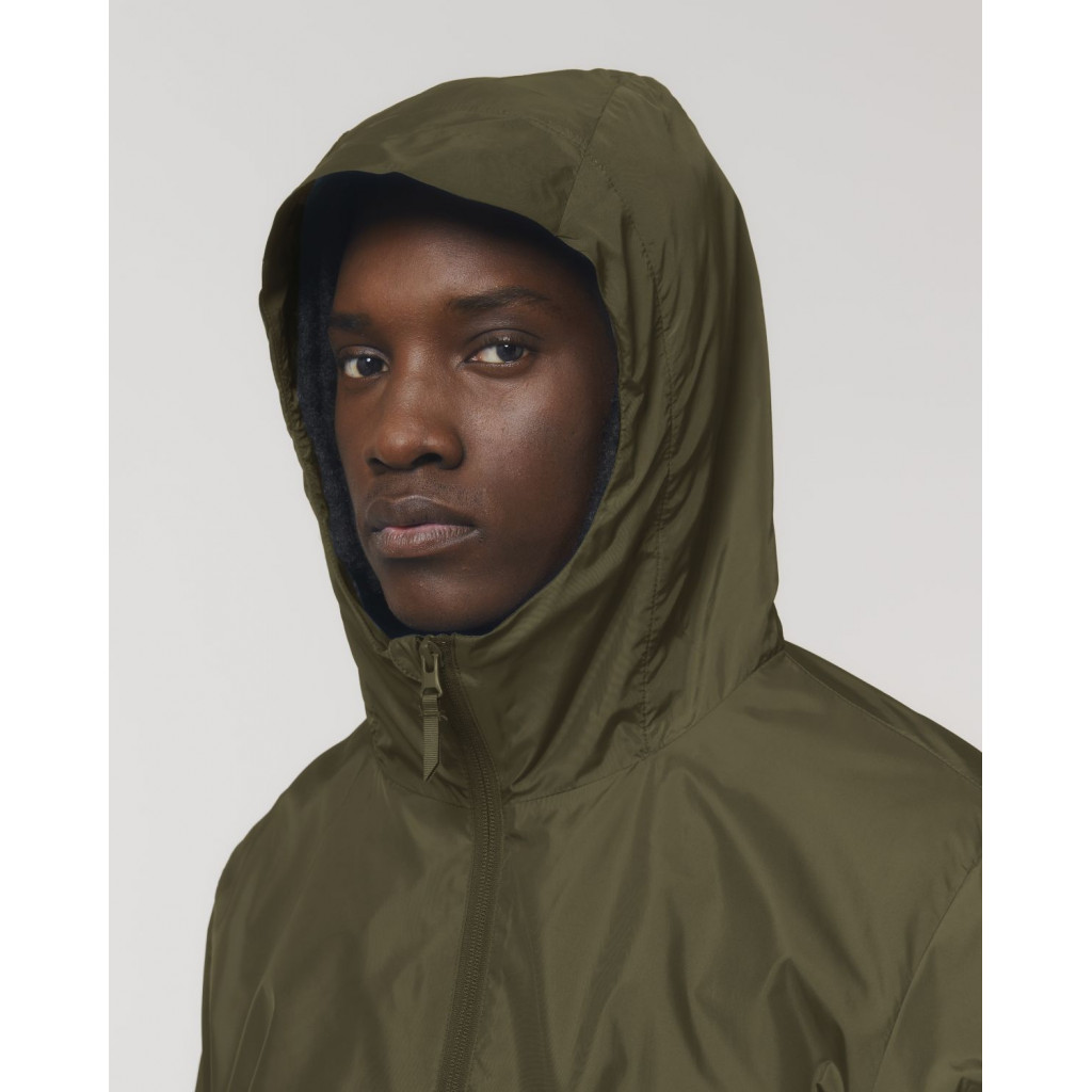 - Capuche doublée avec arrêt en plastique ajustable et cordon élastique à l'intérieur
