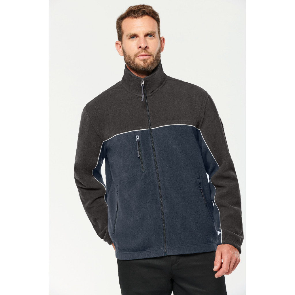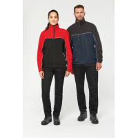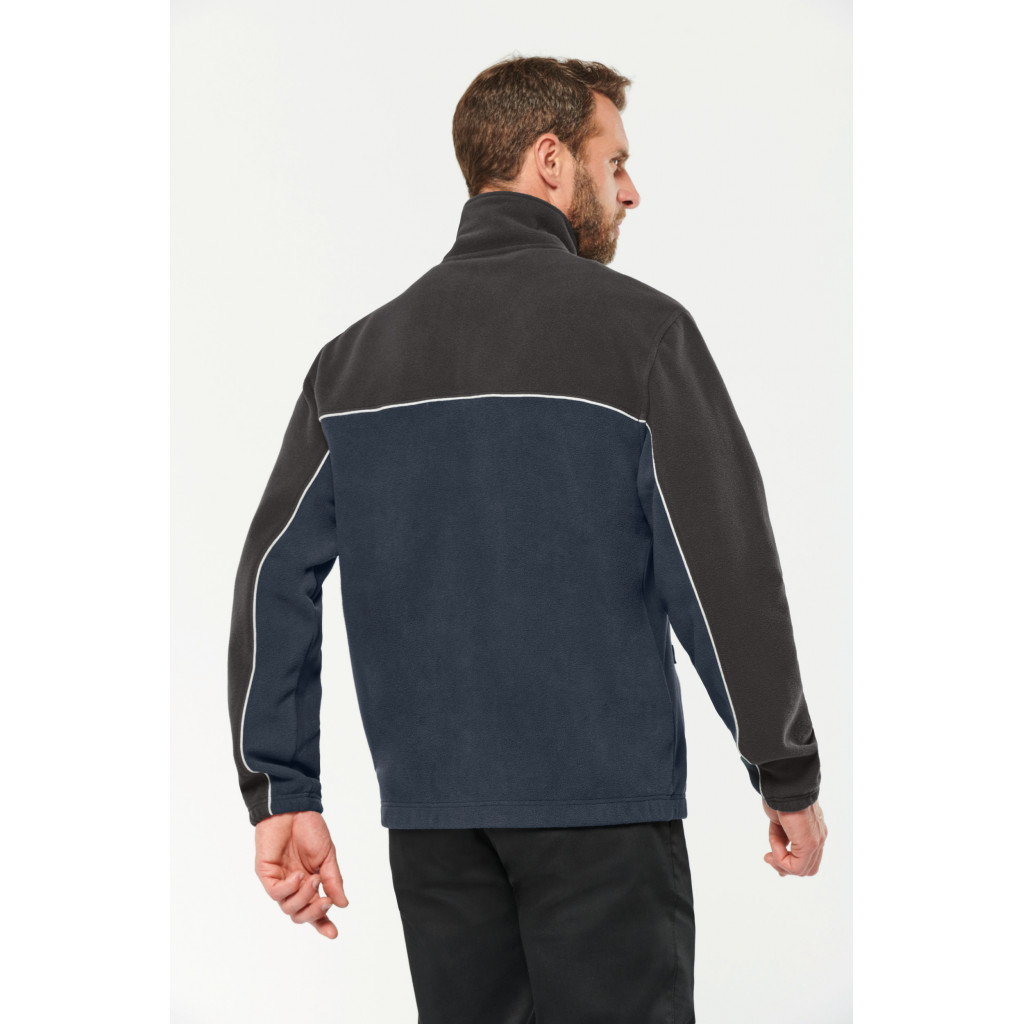 - Passepoil contrasté entre les parties du vêtement bicolores (corps et manches devant et dos)