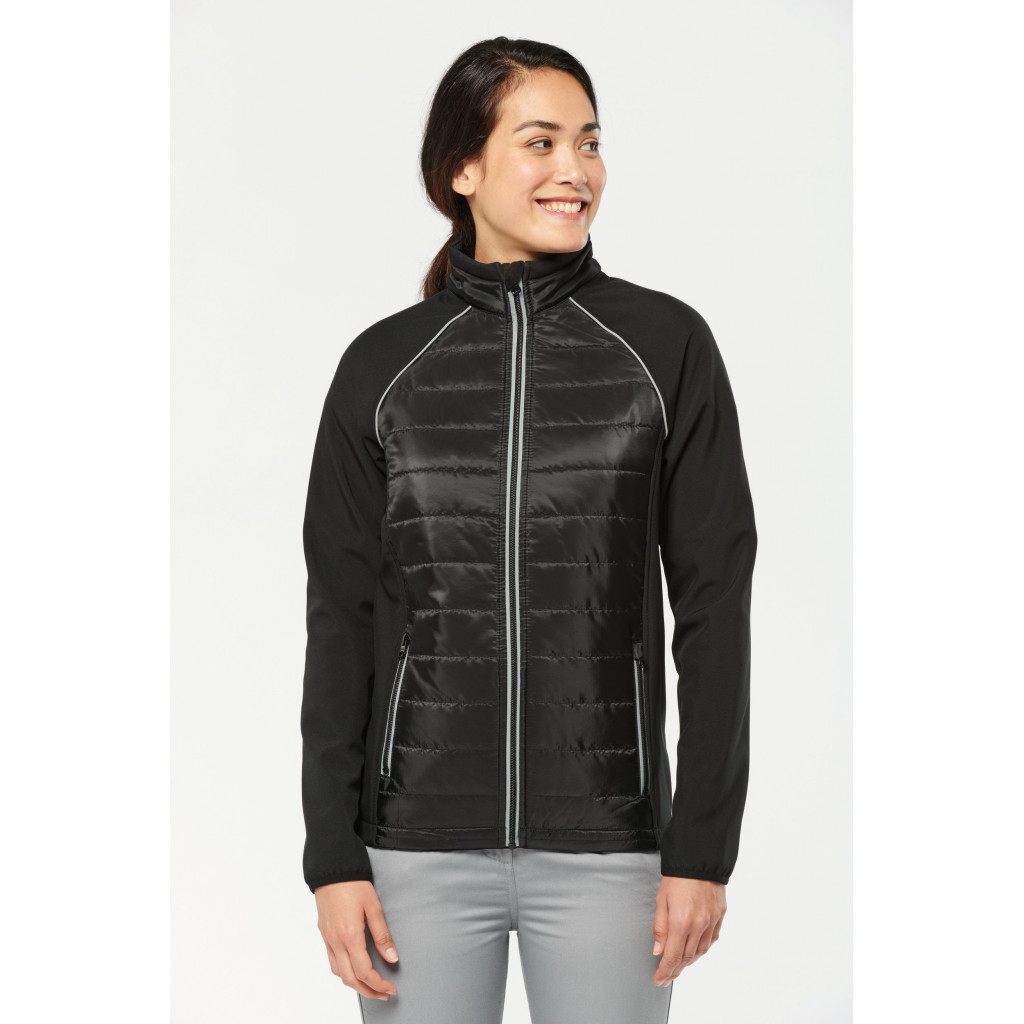 - Softshell 2 couches, tissu extensible dans les 4 sens pour plus d'aisance avec couche intérieure polaire pour plus de chaleur sur les manches et les épaules