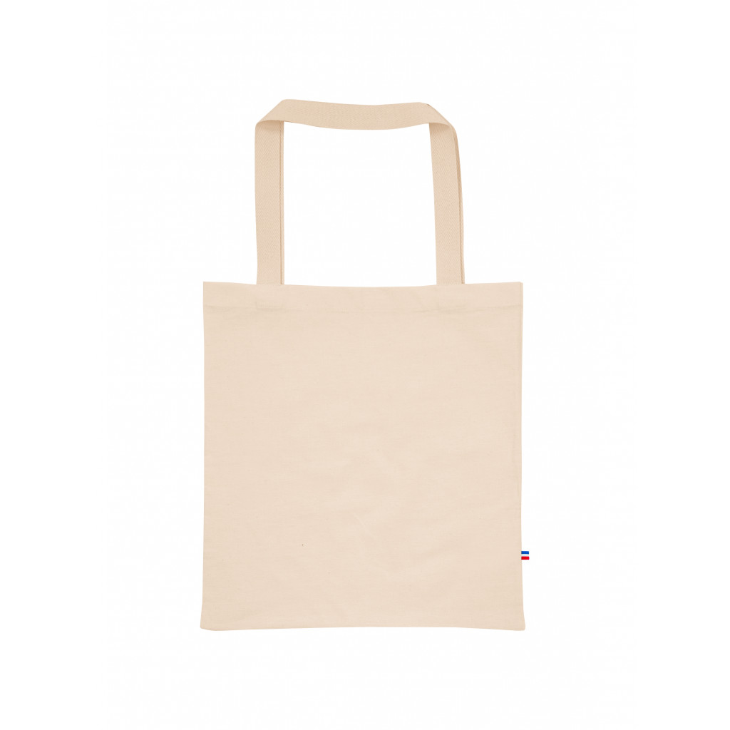 - Anses de 3 cm en sergé coloris naturel, détail tricolore cotébas.