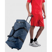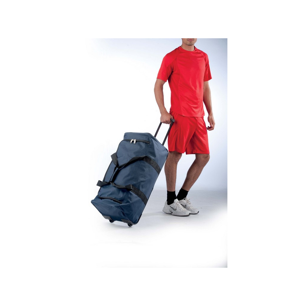 Sac de sport/trolley en polyester 600D, grande ouverture sur le dessus, compartiment range chaussures sur le côté, lanières renforcées tout autour du sac.