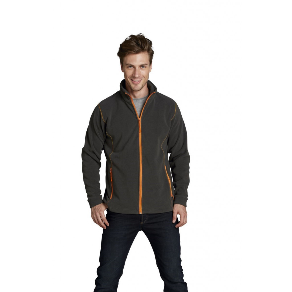 Veste micro polaire Homme en 100% polyester densité accrue. Traitement anti bouloche. La doublure des poches est en filet 100% polyester.