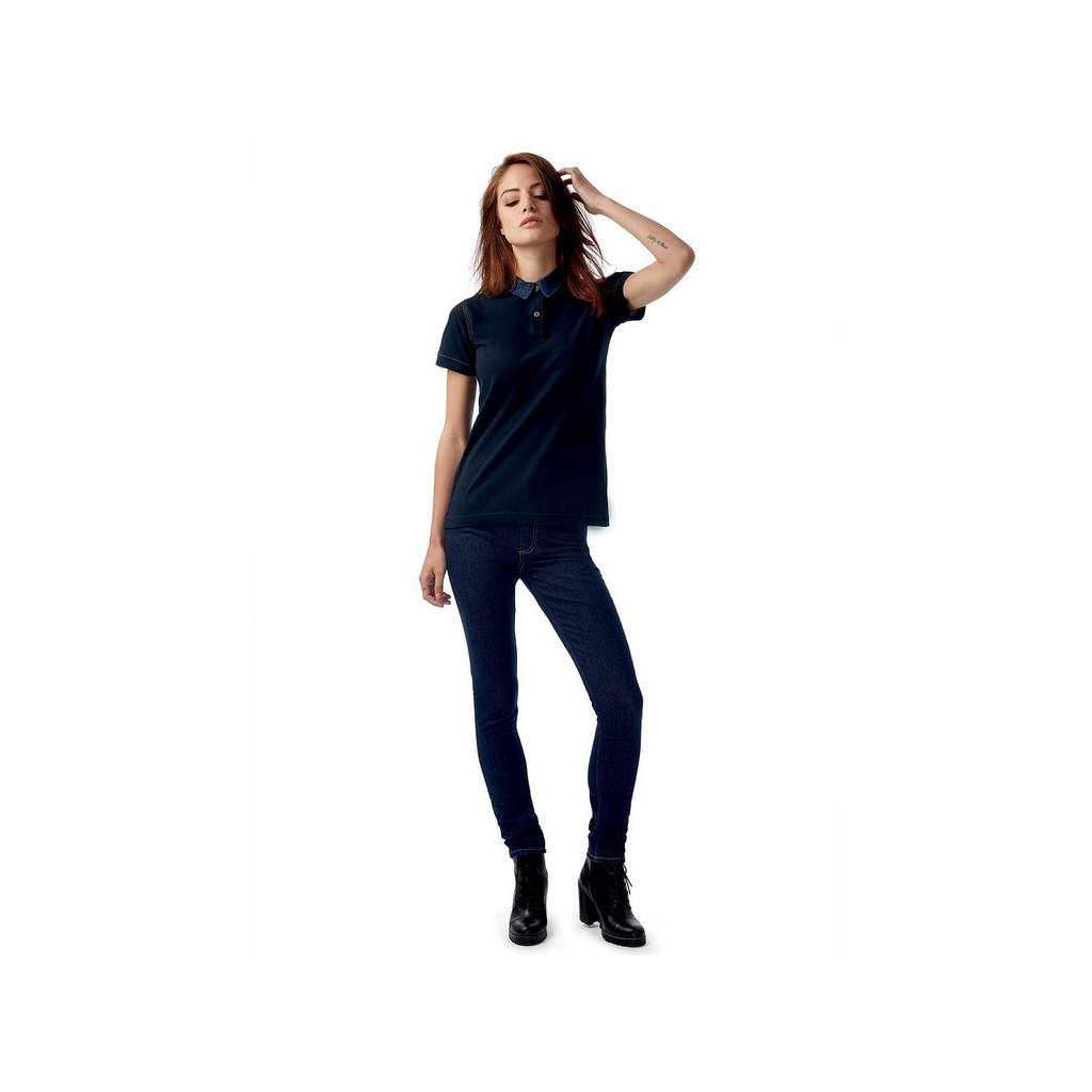 - Fente latérale avec bande de propreté en denim et surpiqûres contrastées.