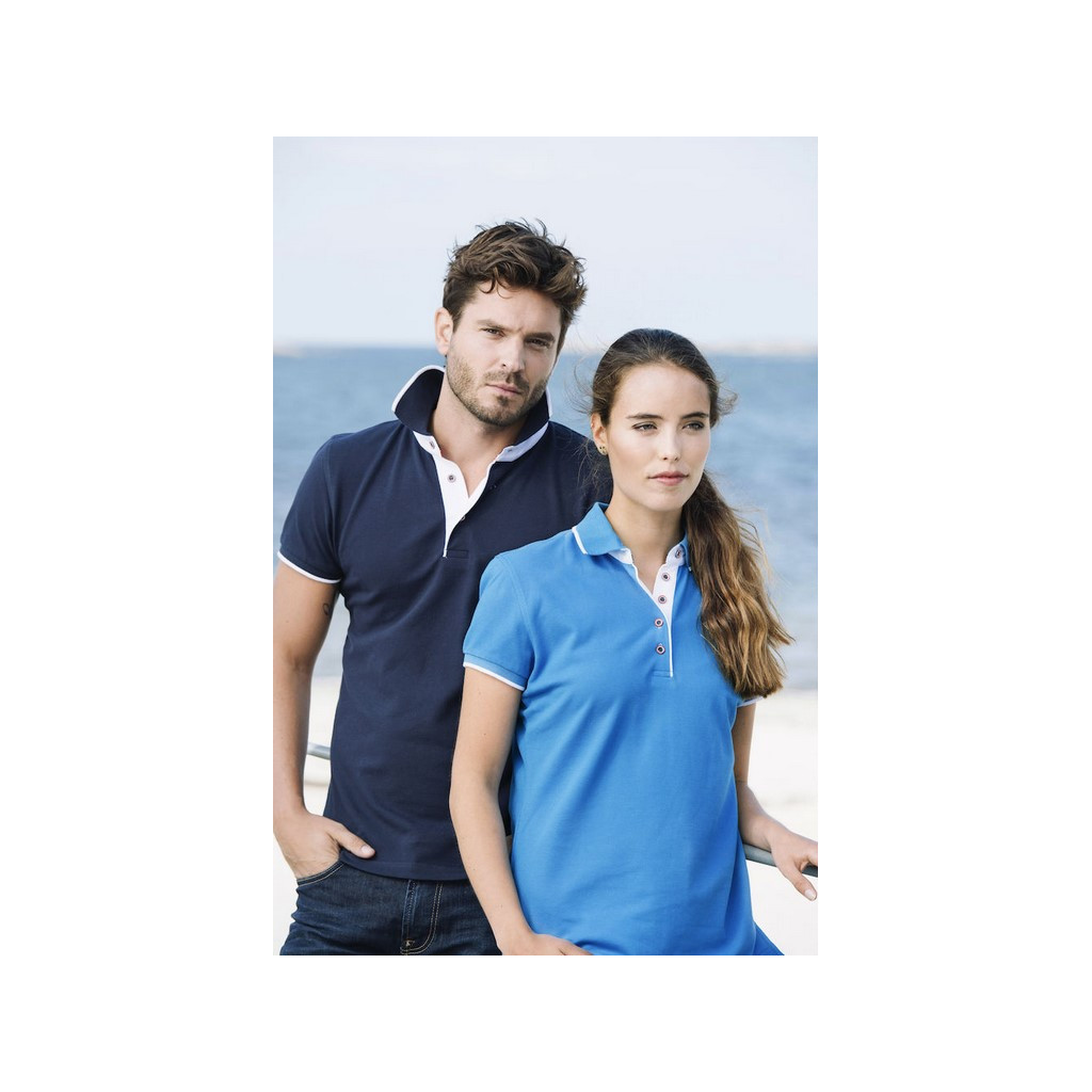 Polo Femme très tendance, manches courtes contrastées, 100% coton, de la marque Clique, à personnaliser en broderie ou impression selon vos envies.