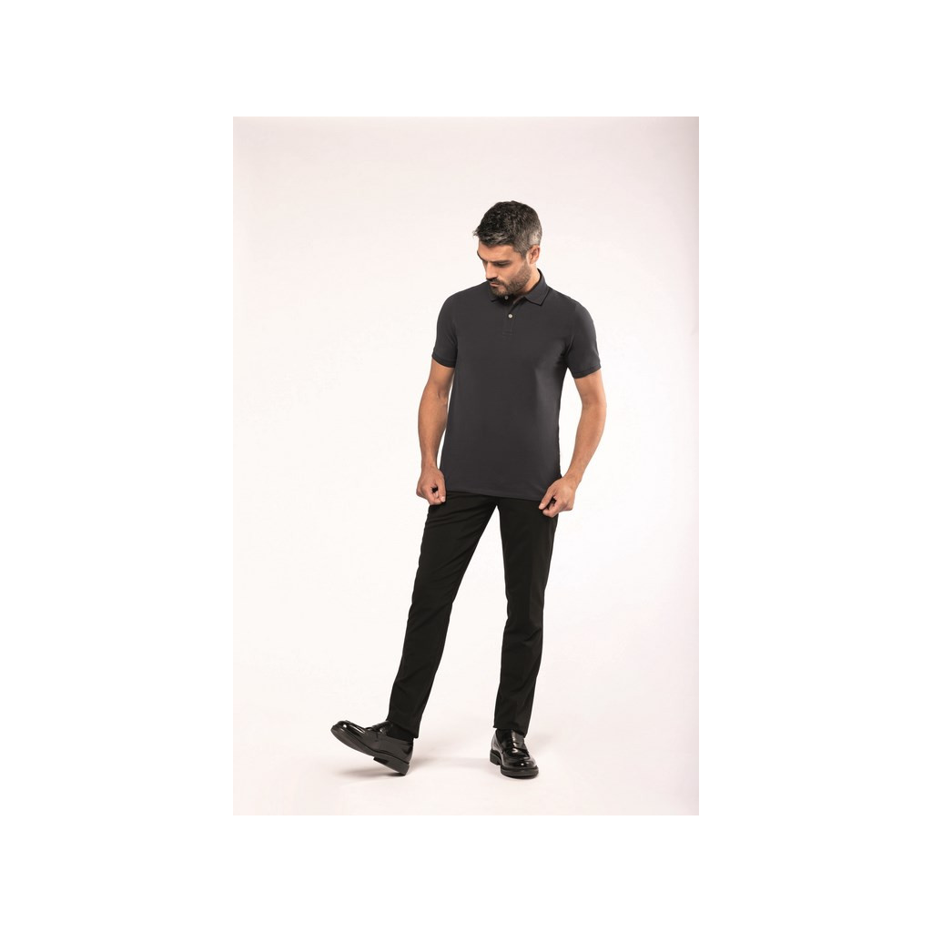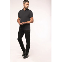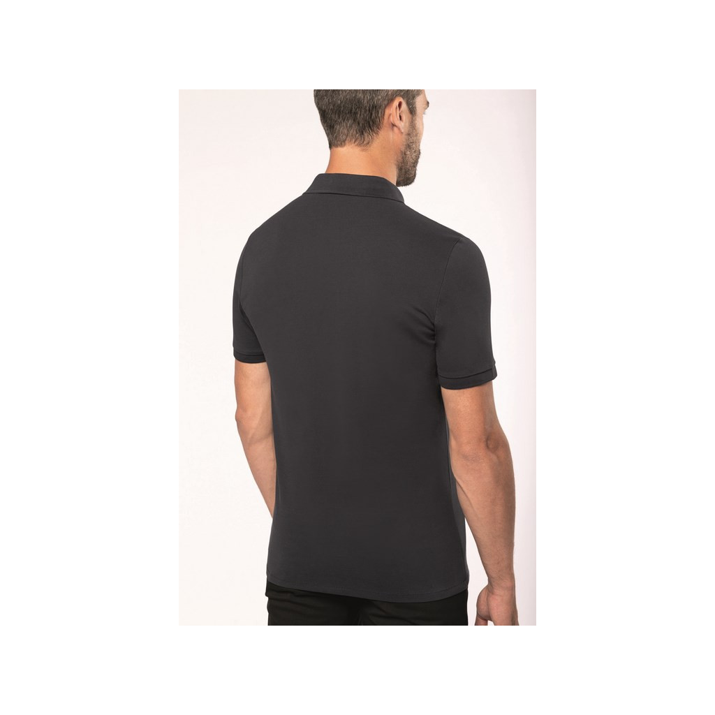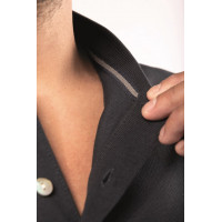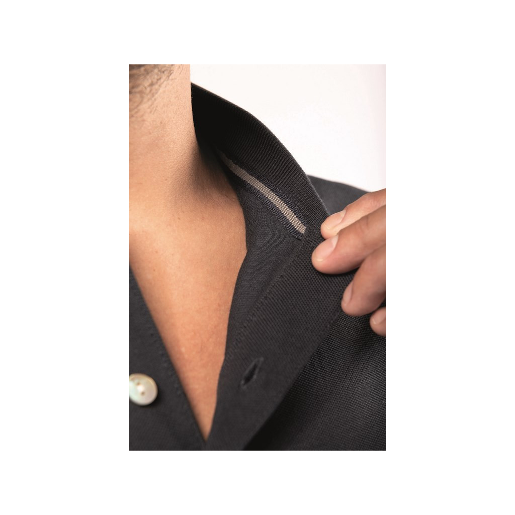 100% coton. Maille piquée en coton Supima®. Tissu d'une extrême finesse et qualité. Toucher soyeux et agréable. Coupe ajustée. Col en bord-côte avec bande de propreté fantaisie et contrastée. Patte 2 boutons en nacre véritable. Finition couture fantaisie au bas de vêtement et bord-côte au bas de manche. Pas d'étiquette de marque au col, uniquement une puce de taille pour faciliter la personnalisation.
