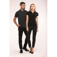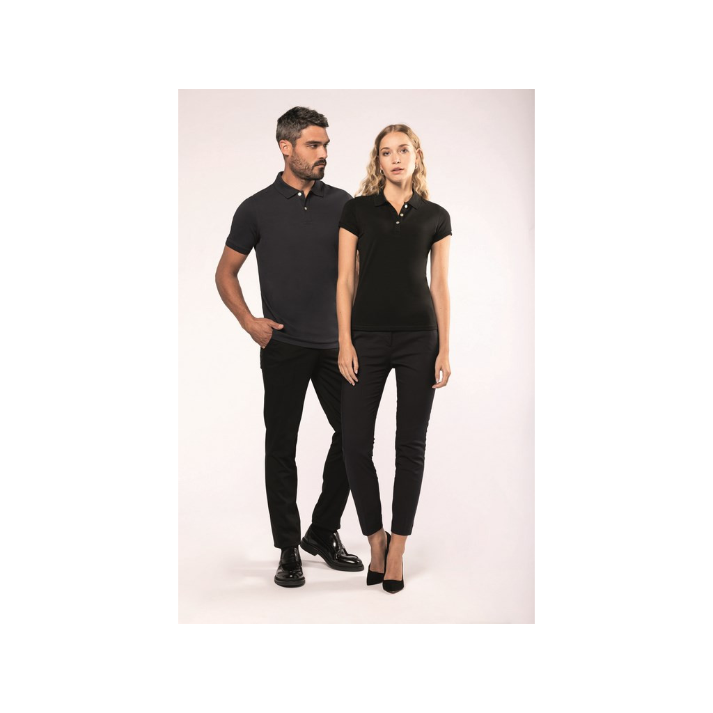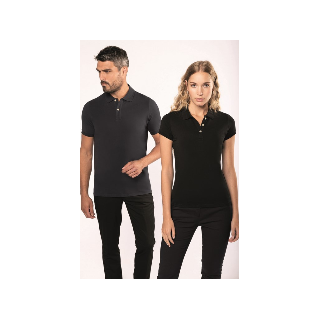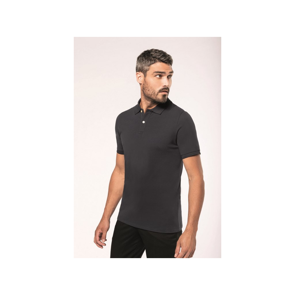 100% coton. Maille piquée en coton Supima®. Tissu d'une extrême finesse et qualité. Toucher soyeux et agréable. Coupe ajustée. Col en bord-côte avec bande de propreté fantaisie et contrastée. Patte 2 boutons en nacre véritable. Finition couture fantaisie au bas de vêtement et bord-côte au bas de manche. Pas d'étiquette de marque au col, uniquement une puce de taille pour faciliter la personnalisation.