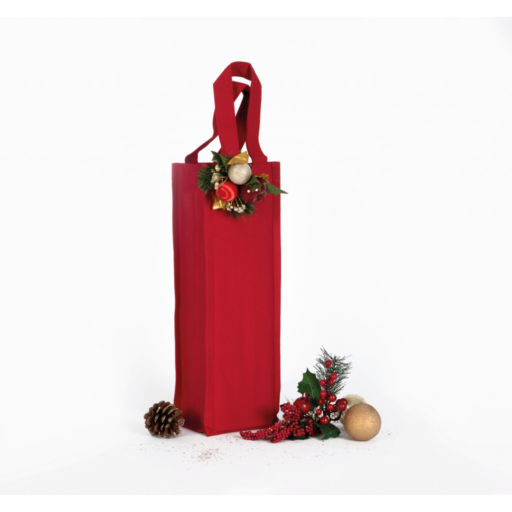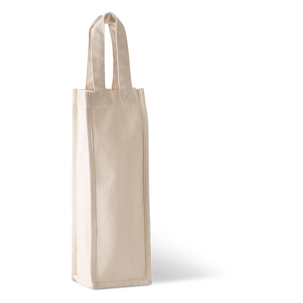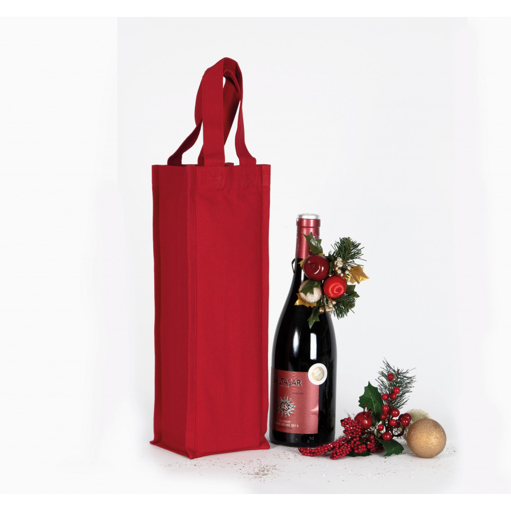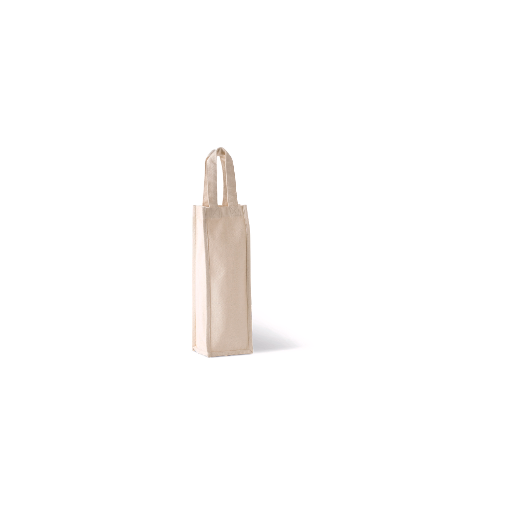 Personnalisez des sacs porte bouteille en coton canvas, 2 poignées dans la même matière et couleur. Conçu pour 1 bouteille.