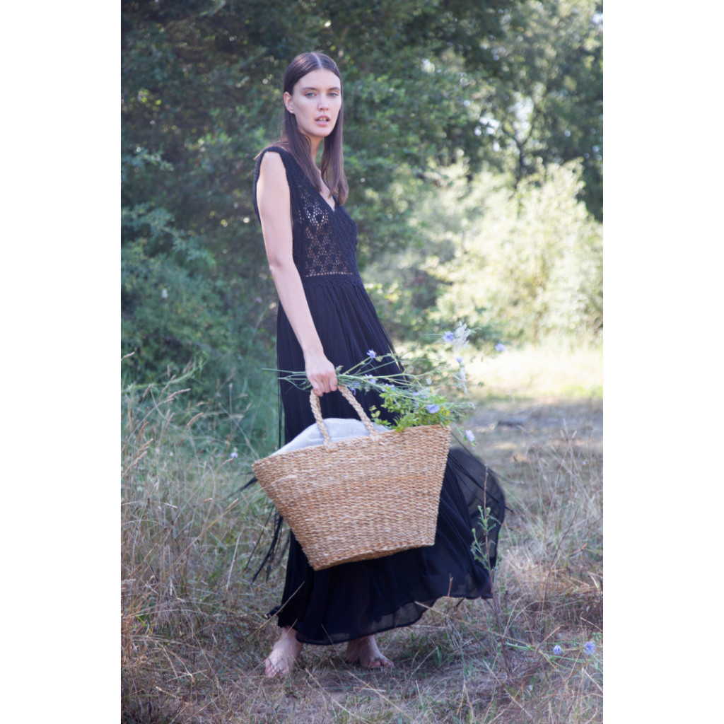Personnalisez la doublure de ce panier tressé à la main à partir de fibre végétale d'algue marine.