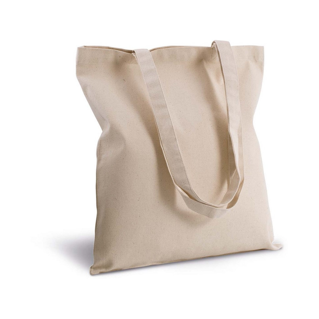 Sac shopping classique en coton canvas, longues anses de 70 cm dans la même matière et couleur.