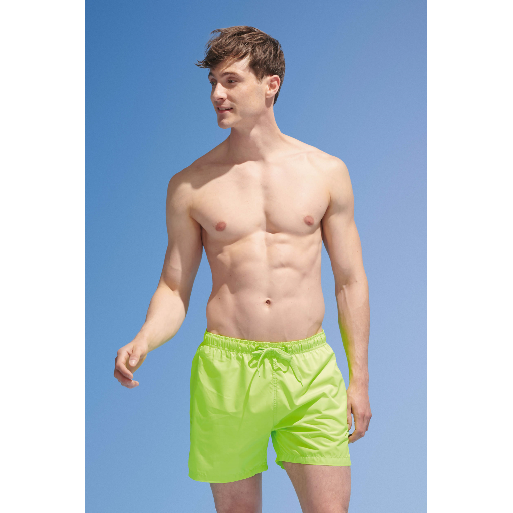 Personnaliser à votre image ce short de bain 100% polyester, Sa taille est élastiquée avec un cordon ton sur ton.
