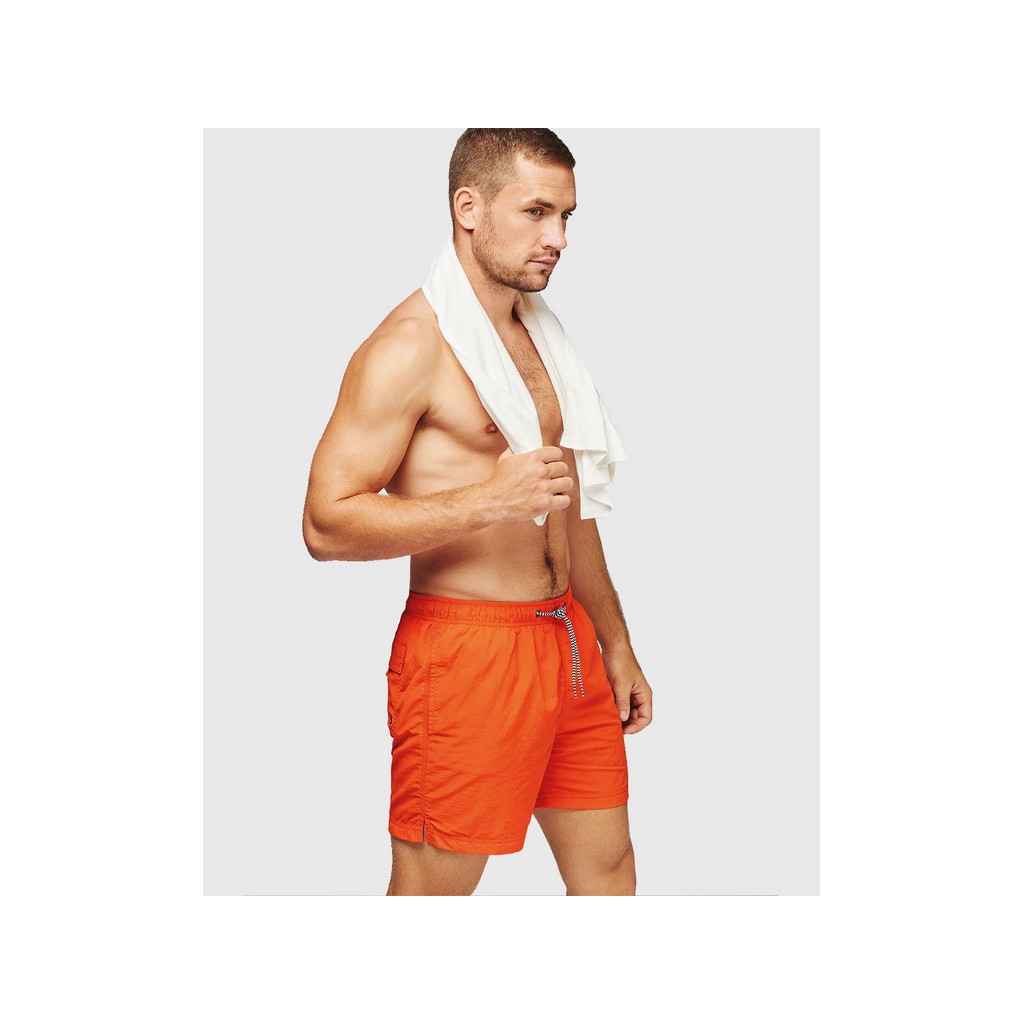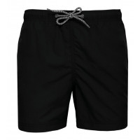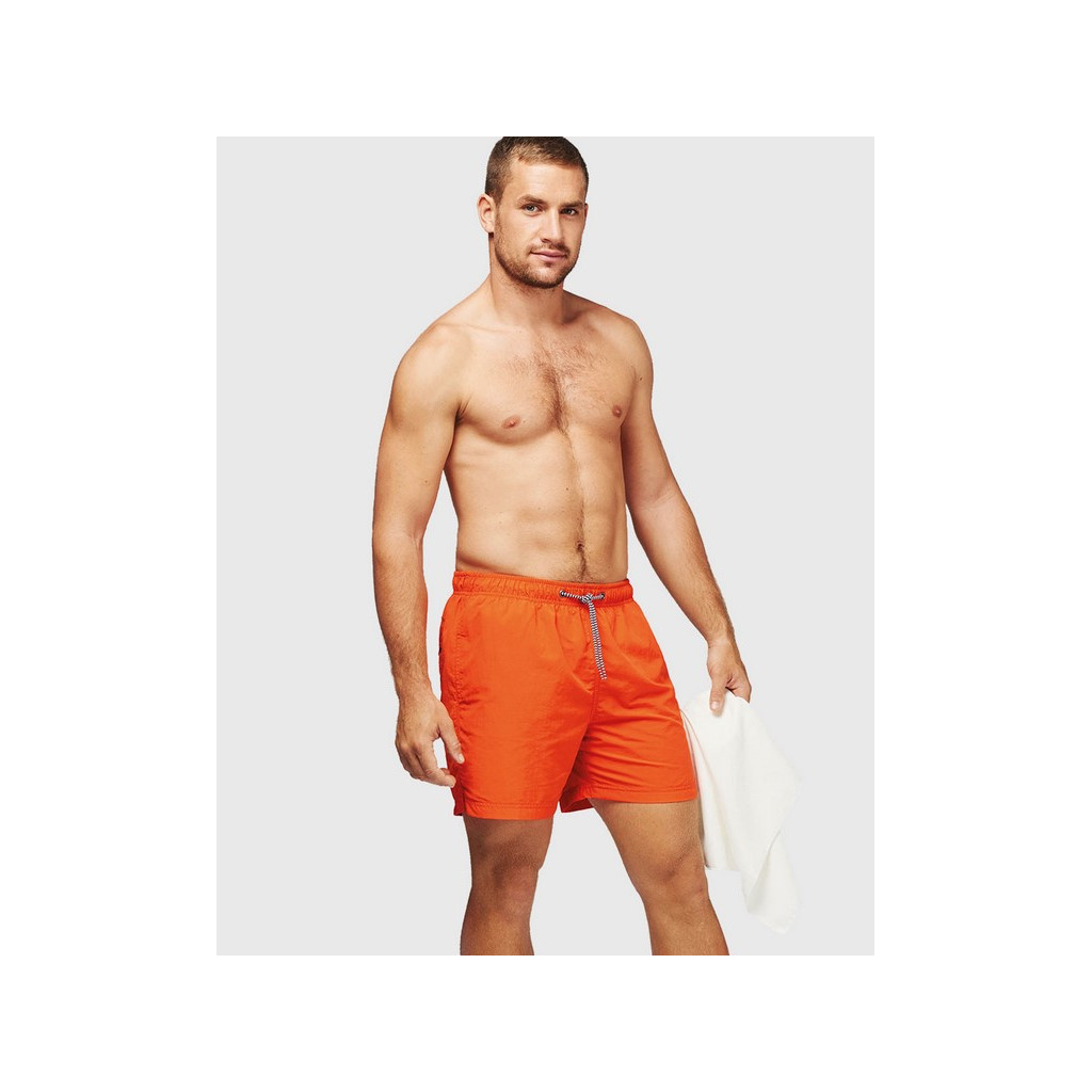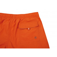 Extérieur : 100% polyamide 105g/m². Slip intégré en maille filet 100% polyester 65g/m². Doublure ceinture polycoton 80g/m². Tissu léger et à séchage rapide. Coupe mode. 2 poches latérales et 1 poche arrière avec oeillet, rabat et bande auto-agrippante. Ceinture intérieure fantaisie et élastiquée avec cordon de serrage.