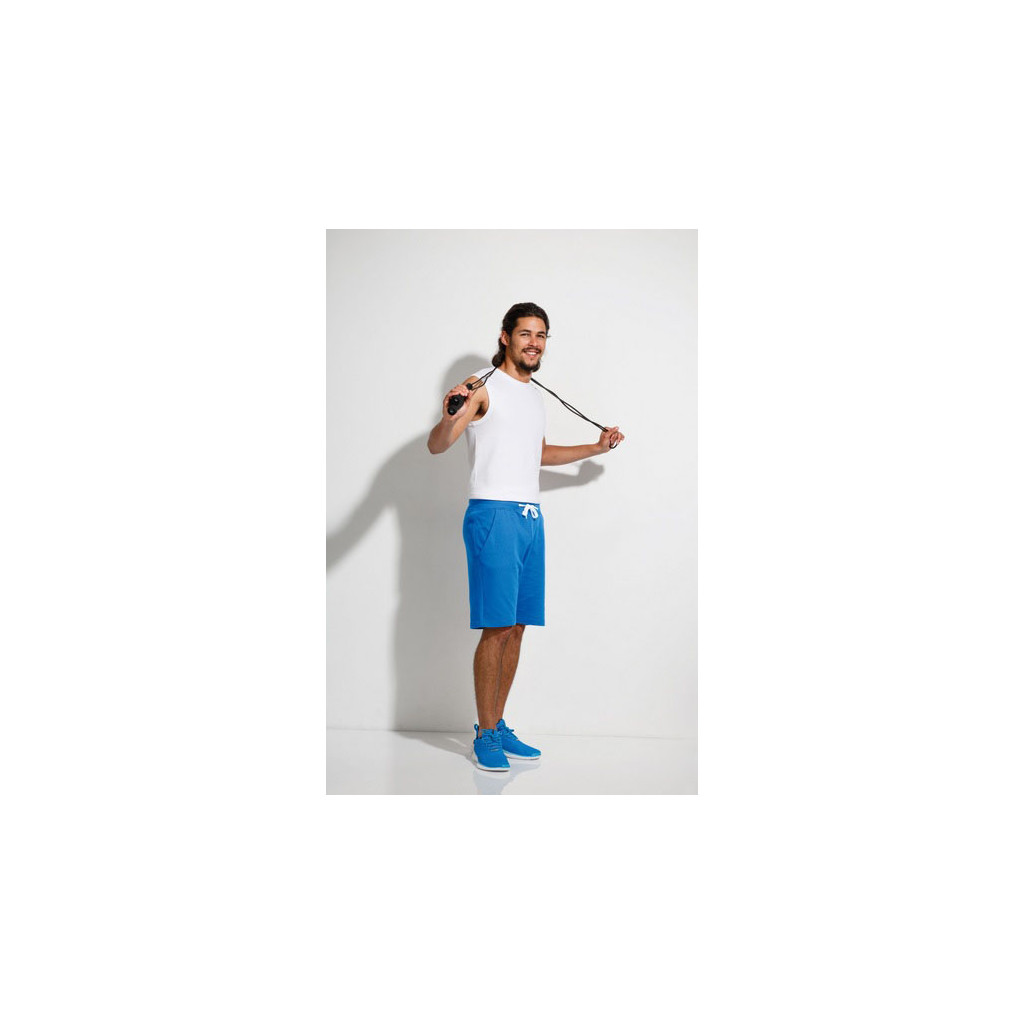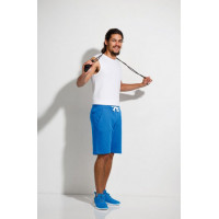 Short homme personnalisable. ce modèle est composé à 80% de coton et à 20% de polyester, avec une taille élastiquée et 2 poches latérales. Ce short de sport est très tendance grâce à ses cordons de serrage contrasté de couleur blanc écru.