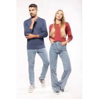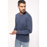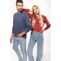 - Finitions Pro : Bord-côte 1x1 avec montage tubulaire au col, poignets et bas de vêtement. Finition demi-lune intérieur col et bande de propreté jersey.