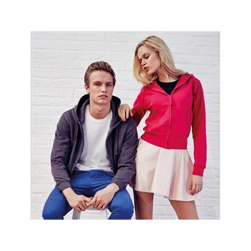 Sweat shirt à capuche à zip intégral dissimulé sera personnalisable selon vos envies. 80% coton / 20% polyester. Grammage: 280 gr/m². Décorations dans la continuité du tissu en doubles surpiqûres, capuche à double épaisseur de tissu et cordon de la même couleur, poche frontale kangourou. Petite ouverture cachée pour y faire passer les fils d'oreillettes, dans la poche droite. Bords de manche et bord inférieur côtelé et tirette en ruban sergé de la même couleur. Production certifiée WRAP ( Worldwide Responsible Accredited Production). Tissu en coton doux, idéal pour en imprimer la surface. Ce modèle est disponible en version Femme et Enfant.