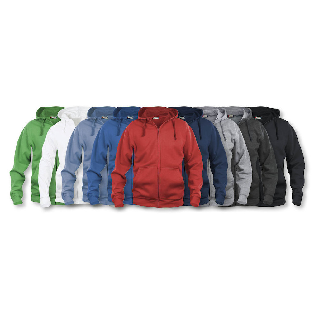 Sweat à capuche full zip homme de la marque Clique composé à 65% polyester et 35% coton. Personnalisez le chez Mes tenues perso avec votre logo, texte, photo…